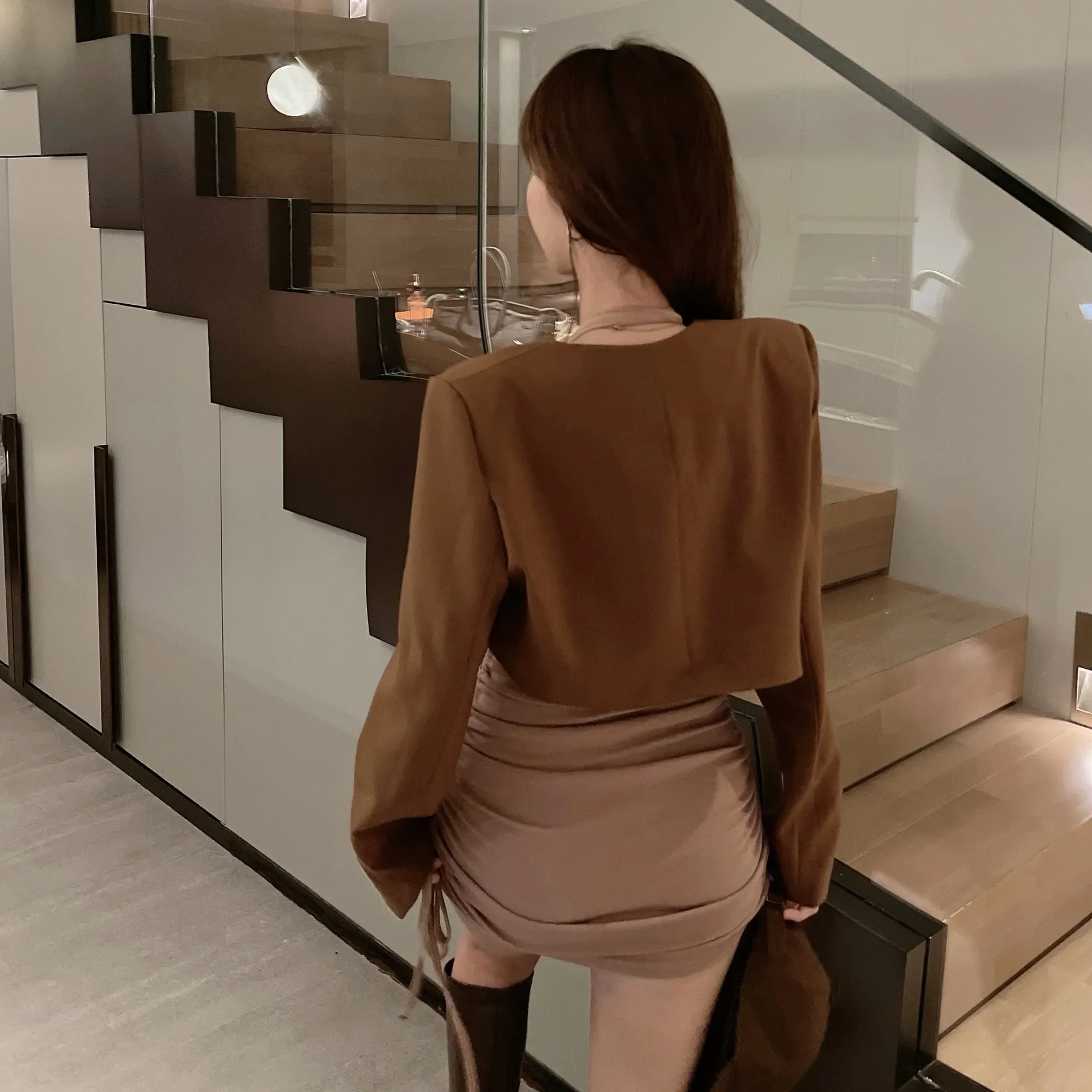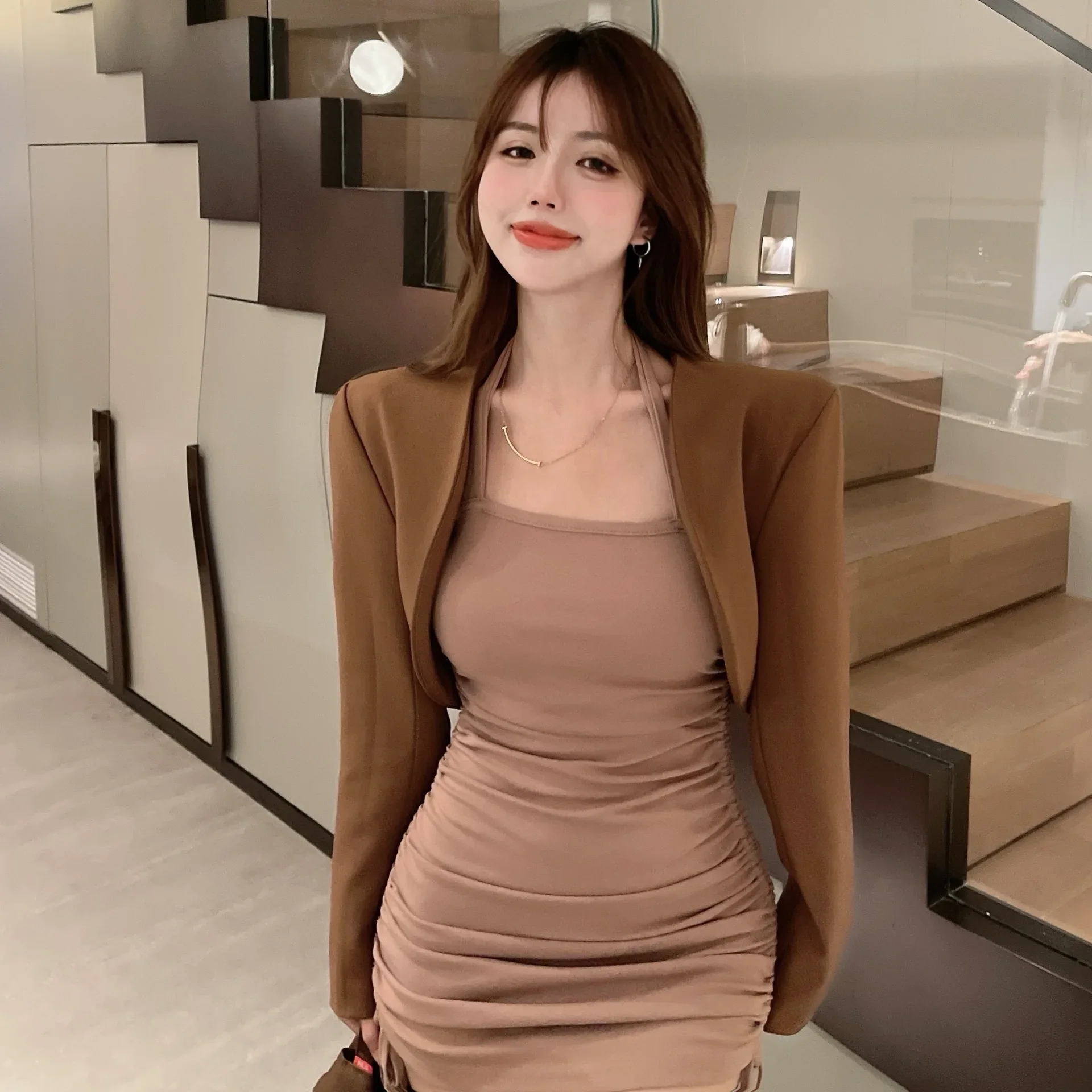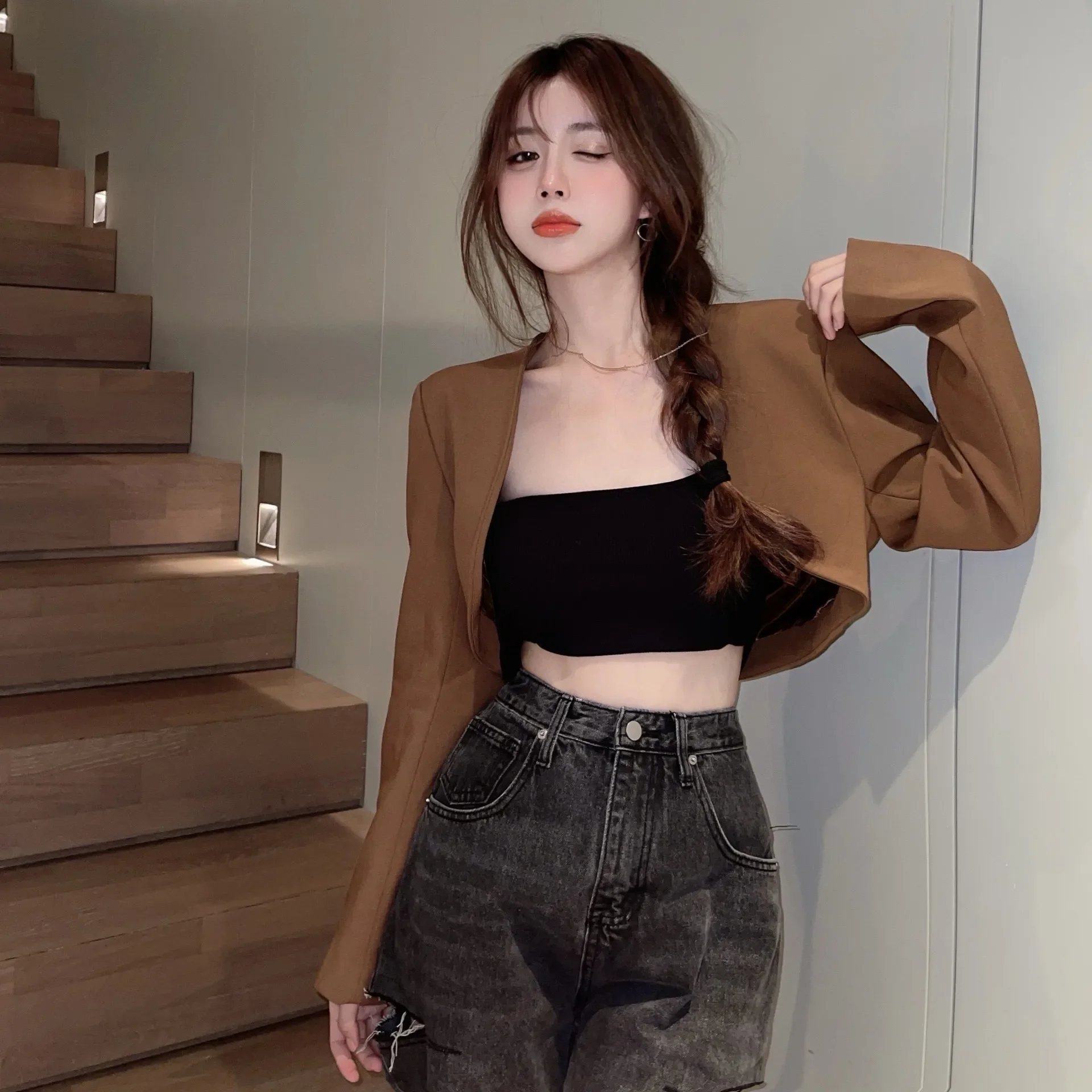 Giacca blazer corta retrò Cardigan sottile nero da donna Design semplice Autunno Inverno Moda Versatile fibra di poliestere stile coreano 1Giacca blazer corta retrò Cardigan sottile nero da donna Design semplice Autunno Inverno Moda Versatile fibra di poliestere stile coreano