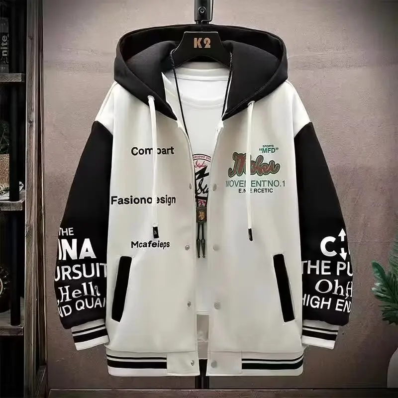 Giacca con cappuccio da uomo nuova M-6XL Abbigliamento da uomo Primavera Autunno Moda coreana Cappotto maschile allentato Maglia da baseball con cappuccio 2024