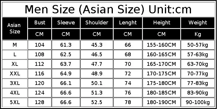 Questo è la dimensione asiatica, è misurata a mano, gli errori da 1-3 cm dovrebbero essere accettato. Il tavolo di quarta dimensione ha una suggerimenti per l’altezza e il peso, puoi rivolgere la consgestione dell’altezza e del peso. Si senti libero a contattarci.