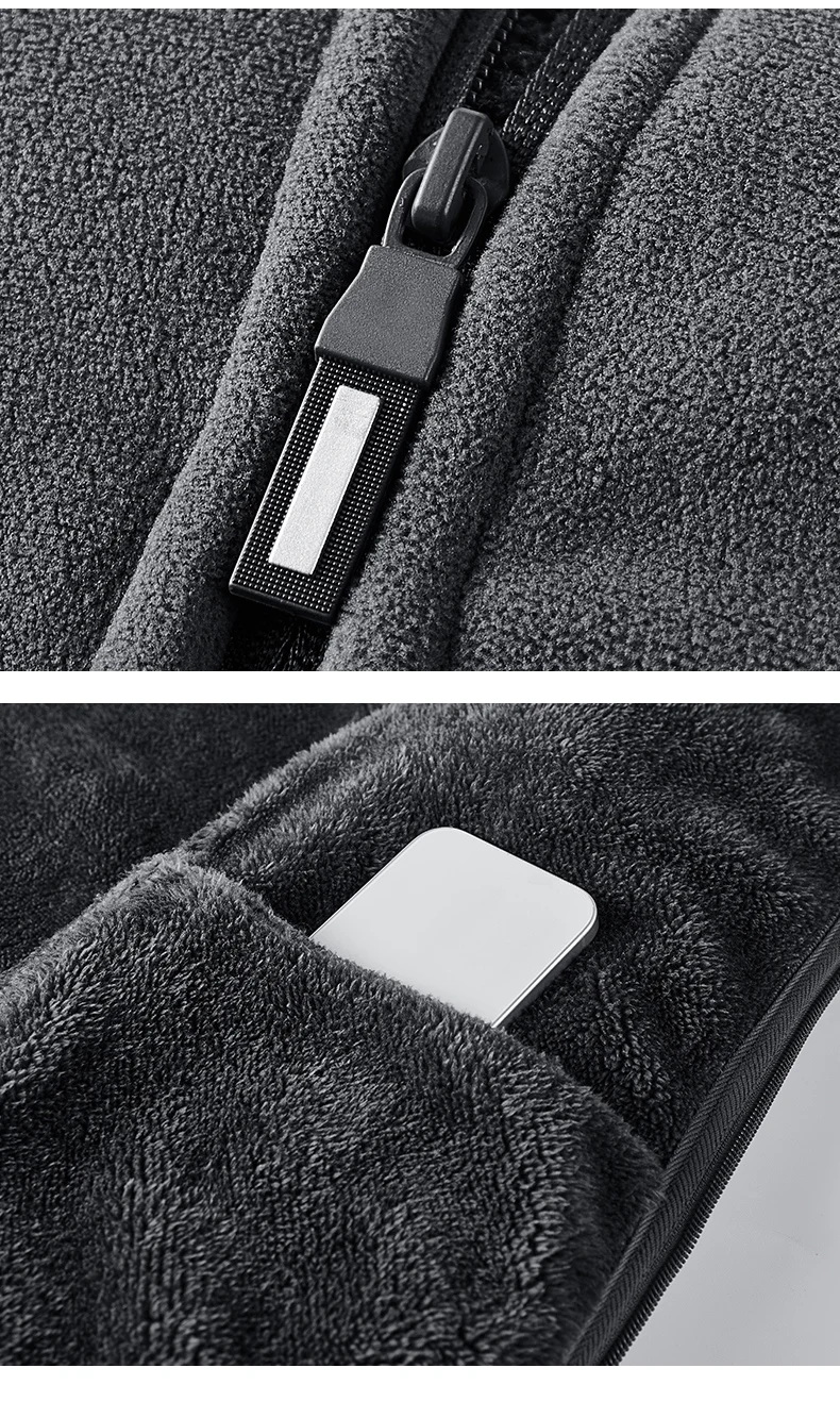 Felpa con cerniera in pile autunnale invernale, felpe con cappuccio da uomo con cerniera, due tasche con cerniera per un archiviazione sicura.