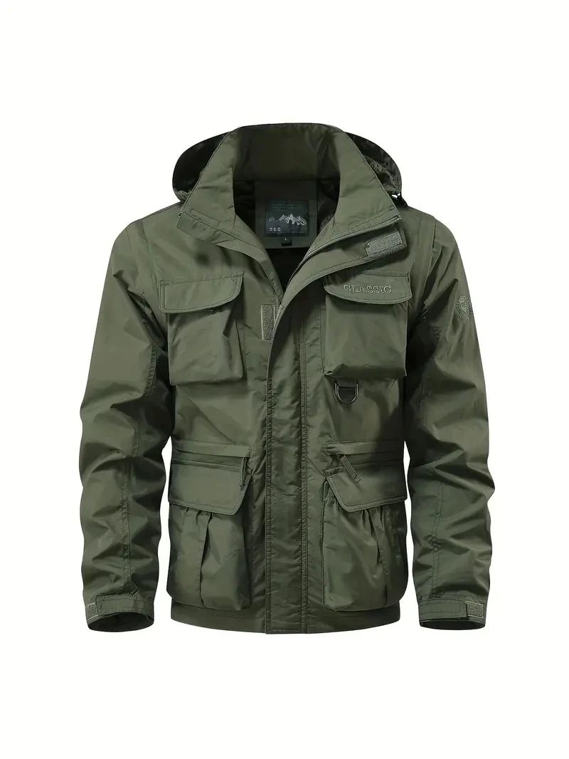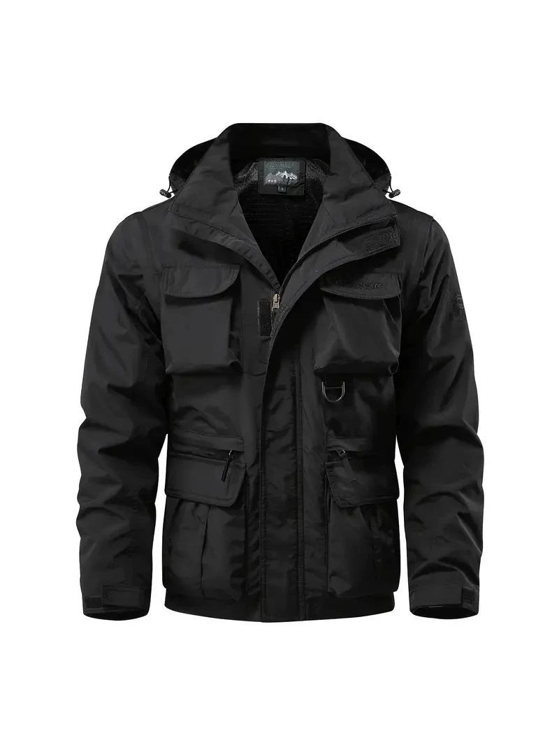 Giacca con cappuccio staccabile con maniche antivento adatta per attività all’aperto gilet multitasche impermeabile casual da uomo