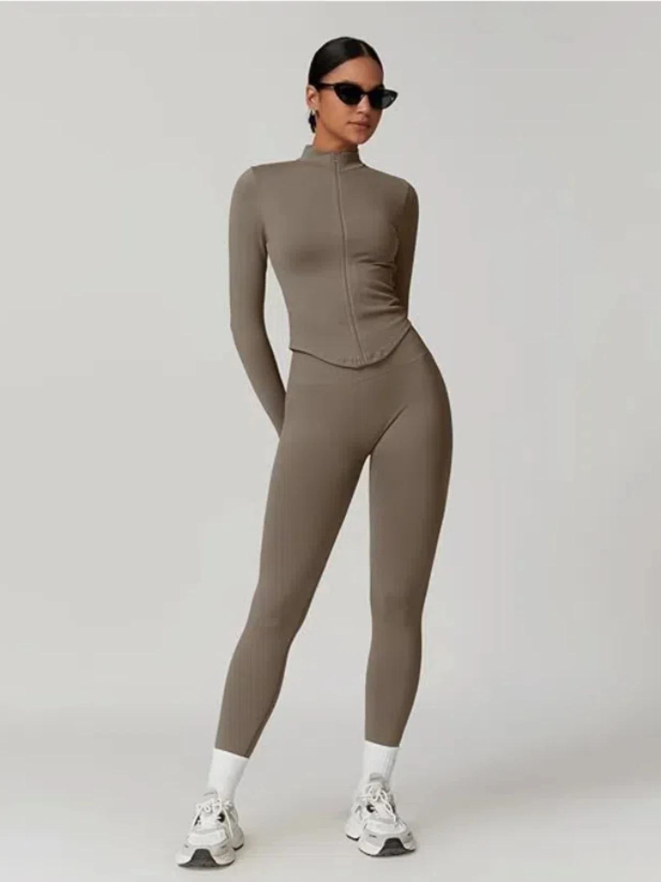 Giacca con cerniera Stand Collor Top corto da donna Yoga Top sportivo solido Manica lunga Corsa Abbigliamento sportivo da palestra per fitness ad asciugatura rapida sexy