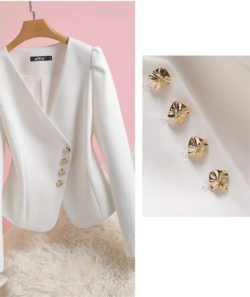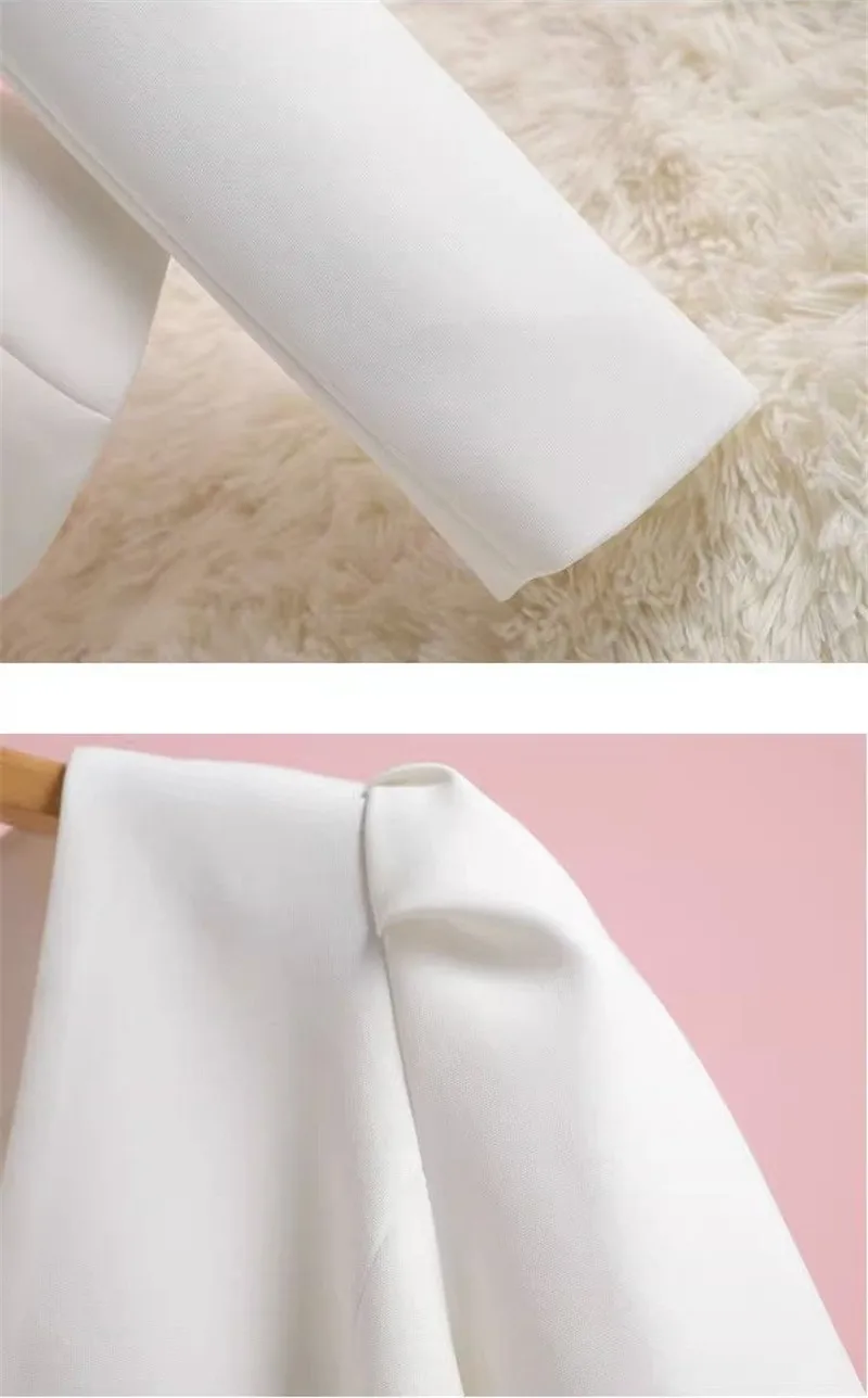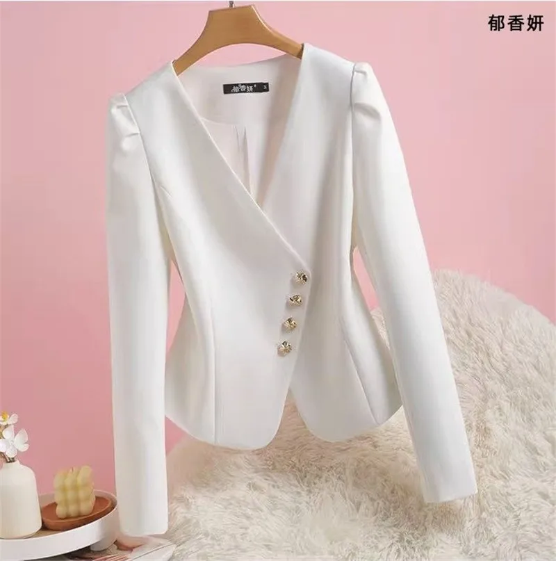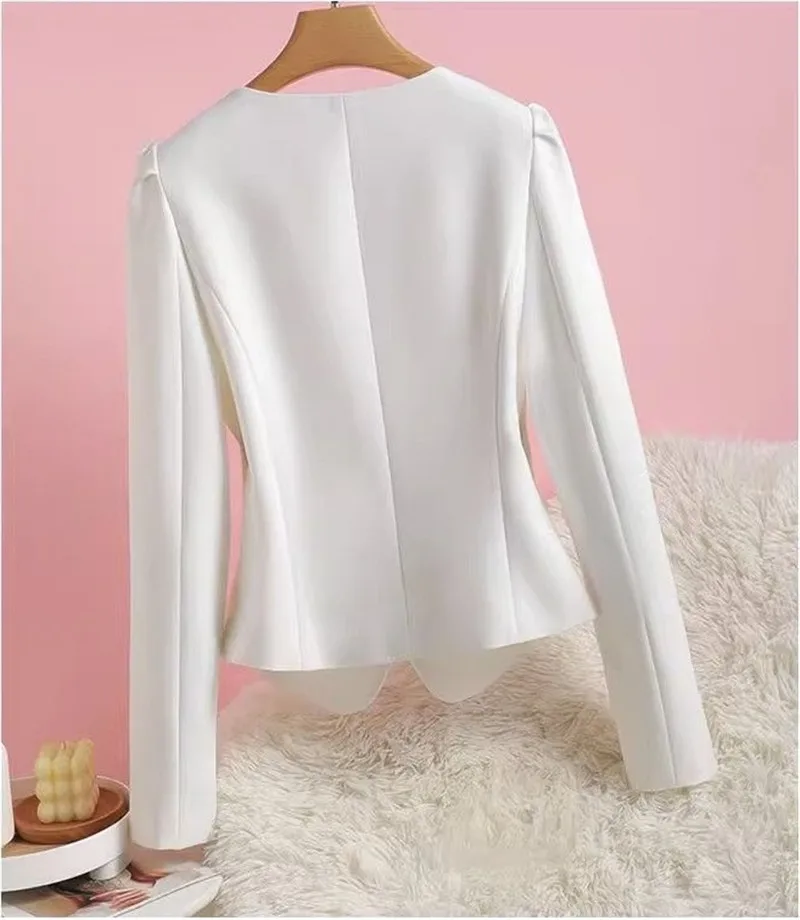 Giacca da abito senza colletto donna primavera autunno 2024 New Bubble Sleeve Blazer Coat Design Sense capispalla Short Fashion Top Women