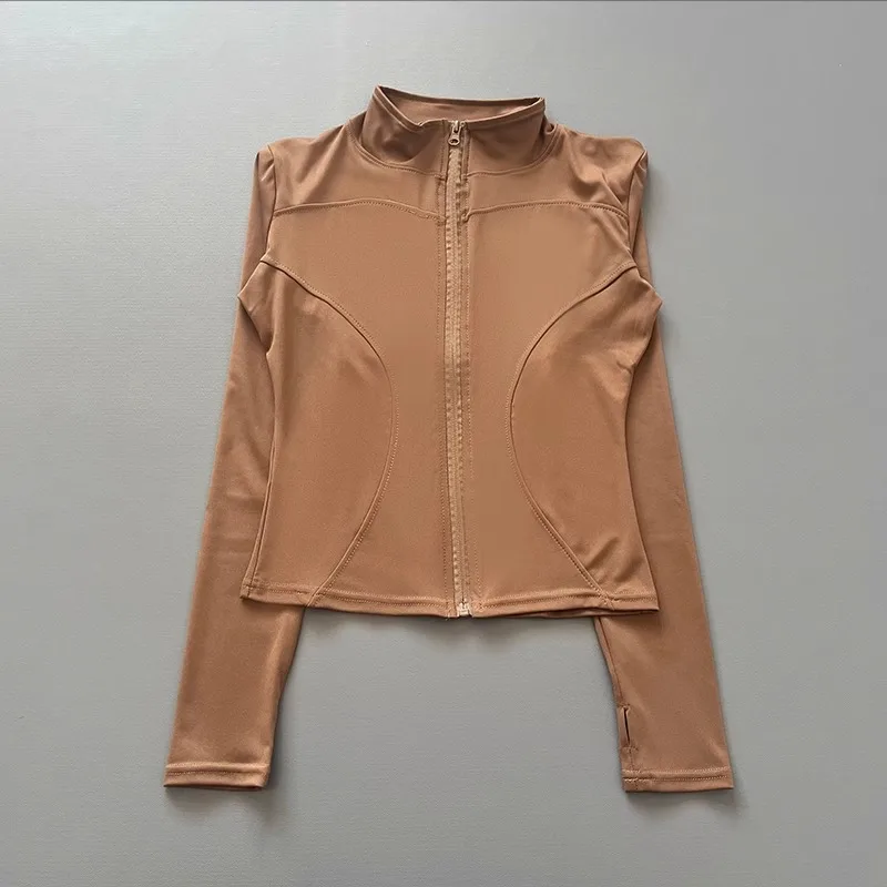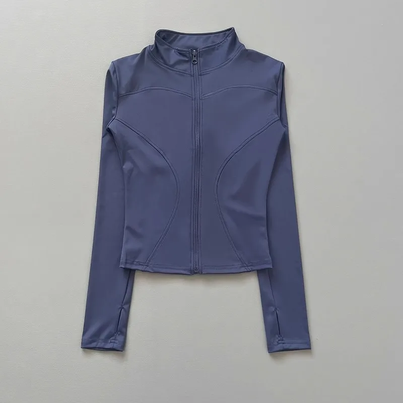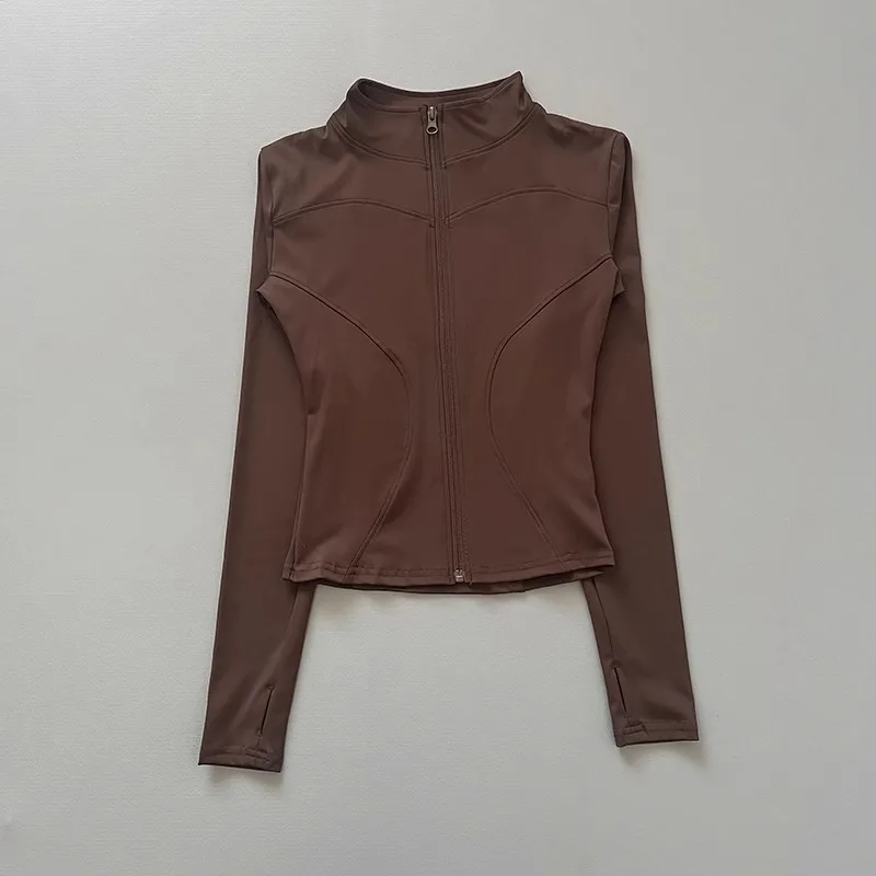 Giacca da allenamento da donna elasticizzata aderente con zip frontale manica lunga da corsa yoga dimagrante colletto rialzato checca la vita Sportswe ad asciugatura rapida 1Giacca da allenamento da donna elasticizzata aderente con zip frontale manica lunga da corsa yoga dimagrante colletto rialzato checca la vita Sportswe ad asciugatura rapida