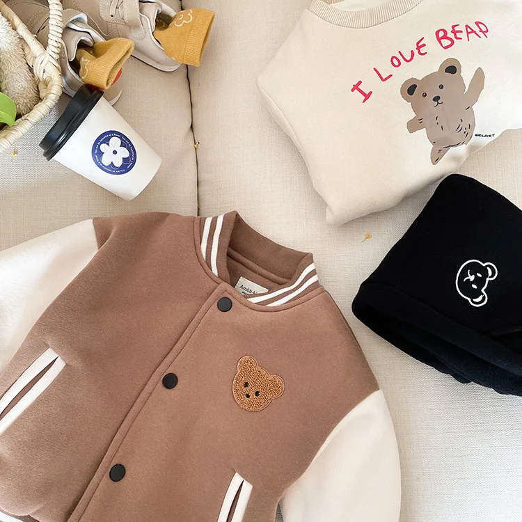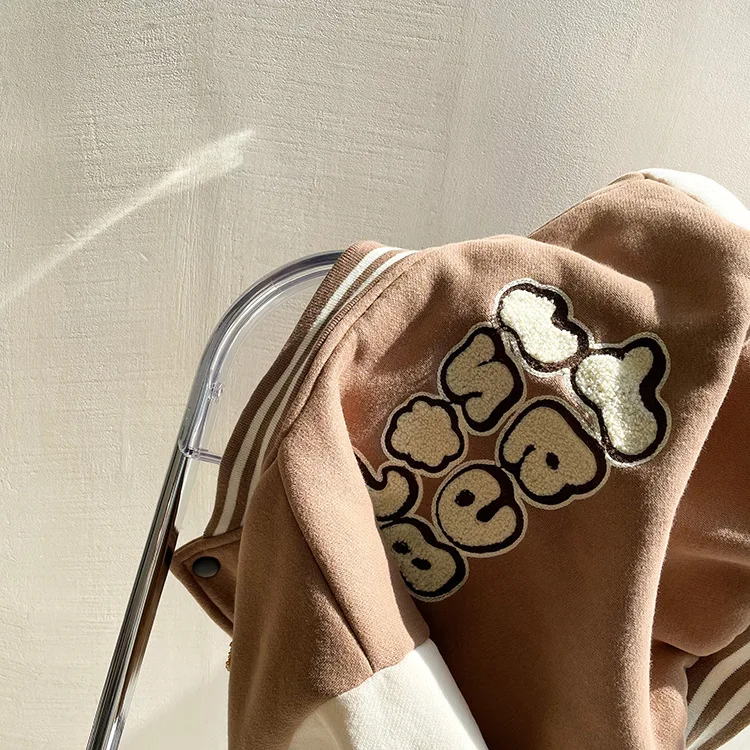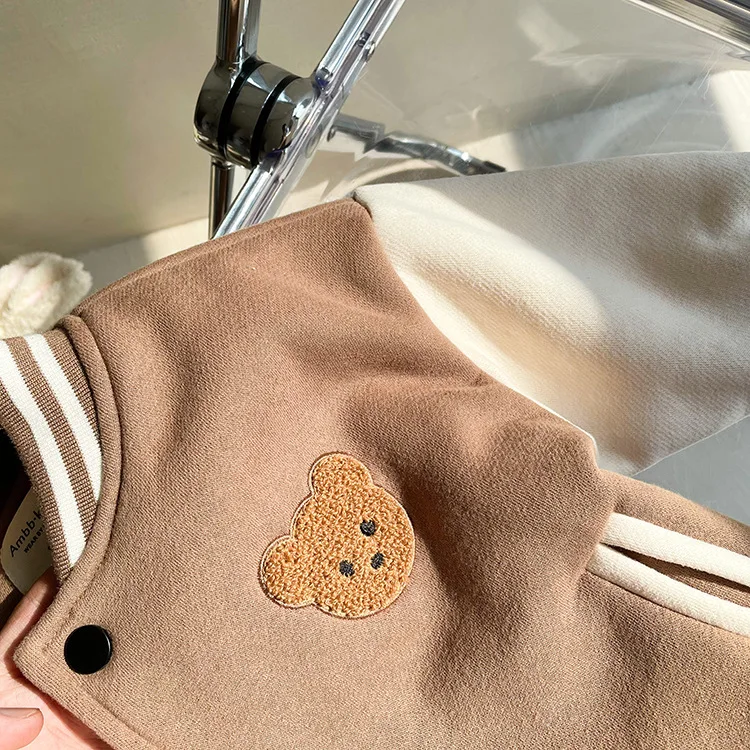 Giacca da bambino Casual Orso ricamato Capispalla per bambini Cappotto basic Bambino neonato Neonato Ragazze Vestiti Carino in pile Inverno caldo