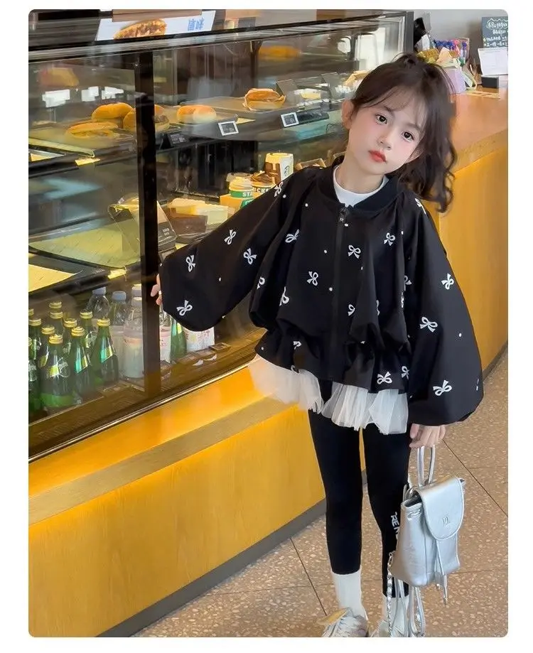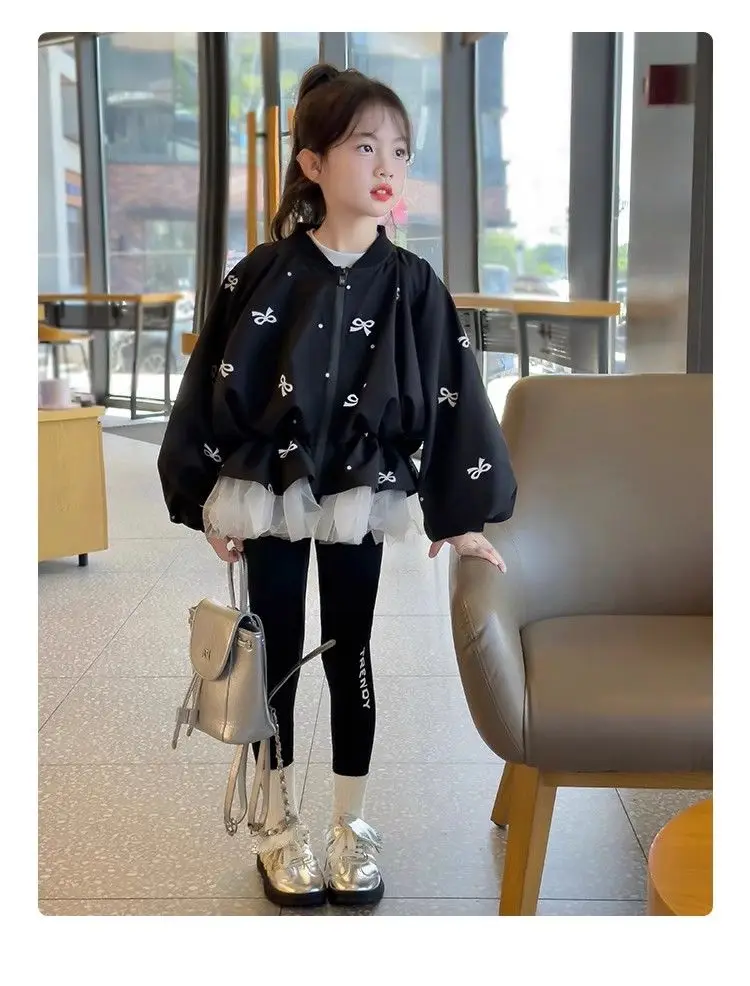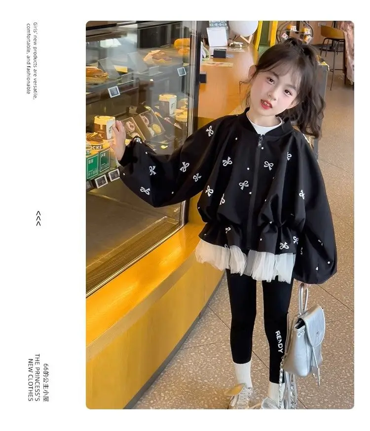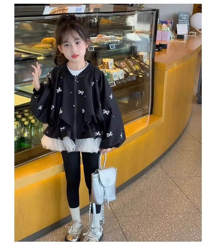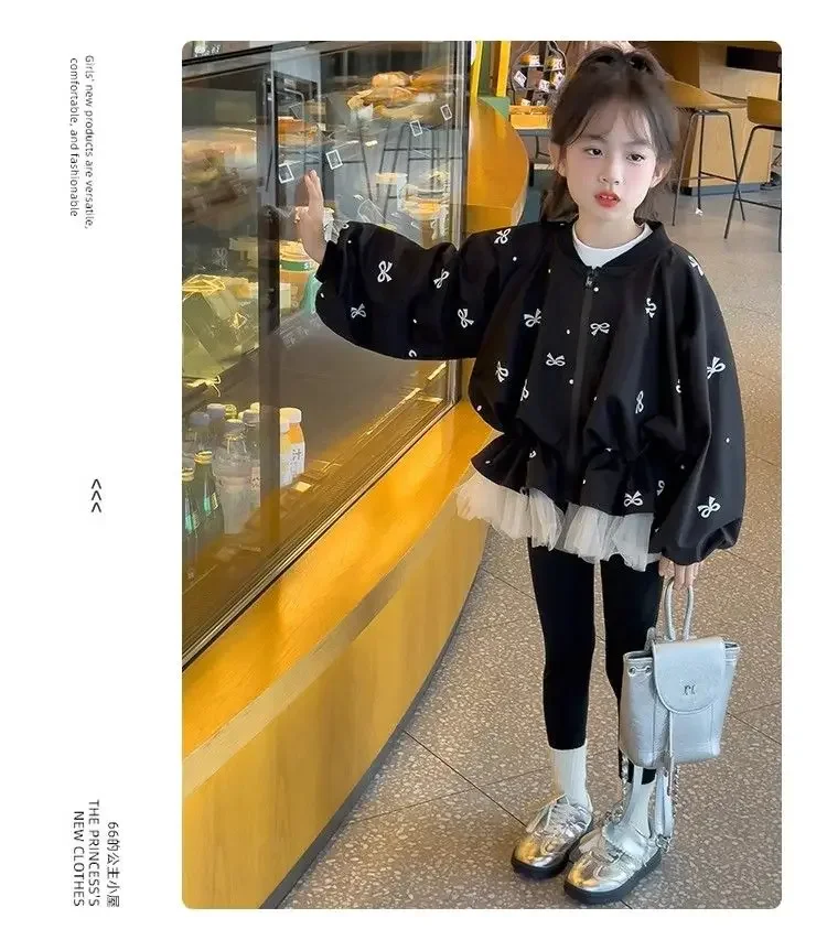 Giacca da baseball da ragazza autunnale Capispalla stile principessa alla moda Cappotto casual colorblock per bambini Giacca impiombata alla moda per ragazze