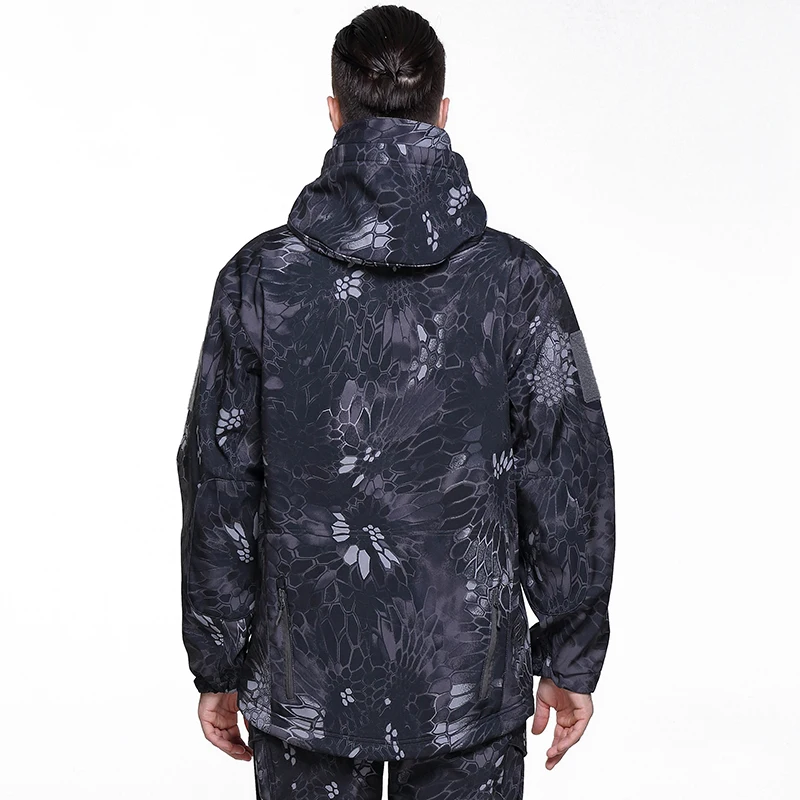 Giacca da caccia mimetica Soft Shell da uomo Giacca tattica invernale in pile impermeabile Cappotto con cappuccio da pesca per escursionismo all’aperto
