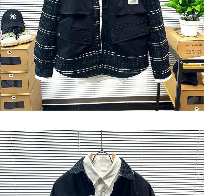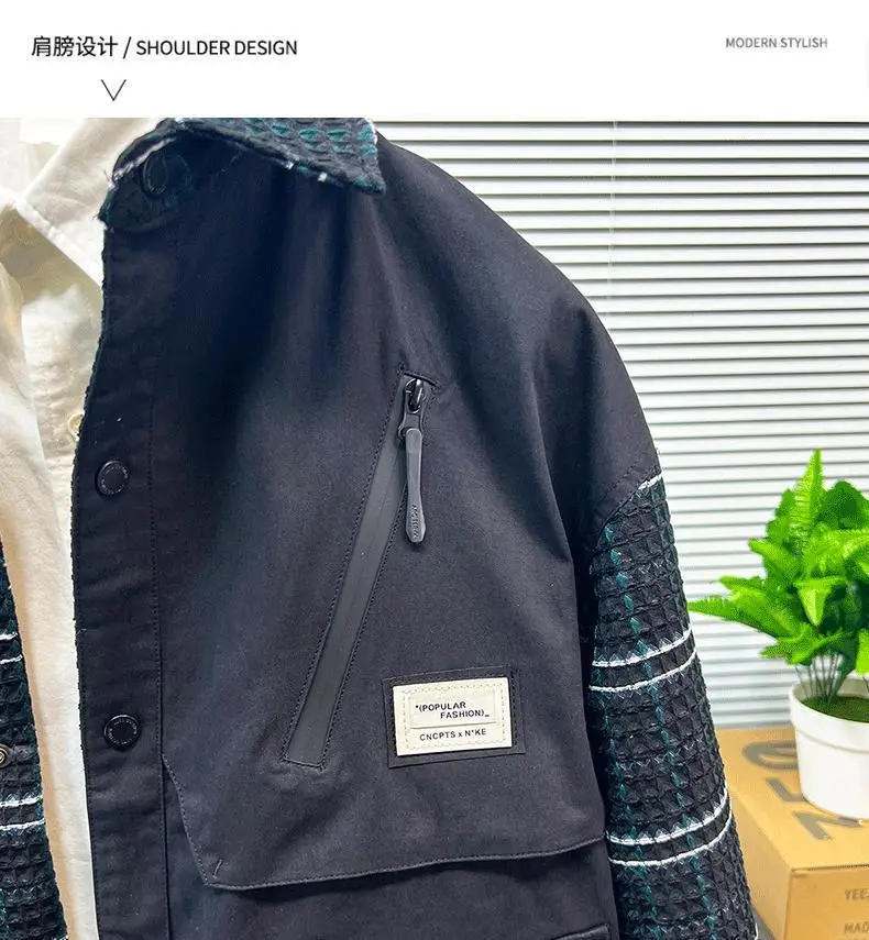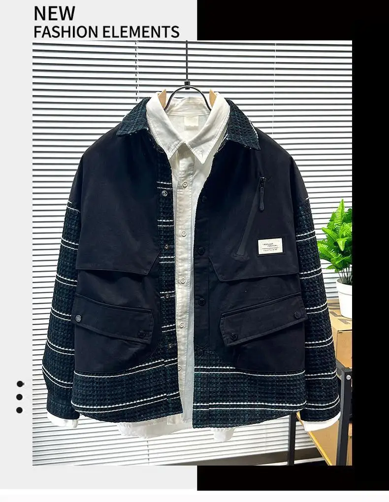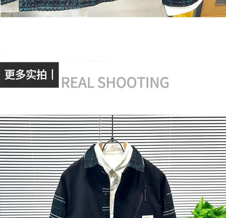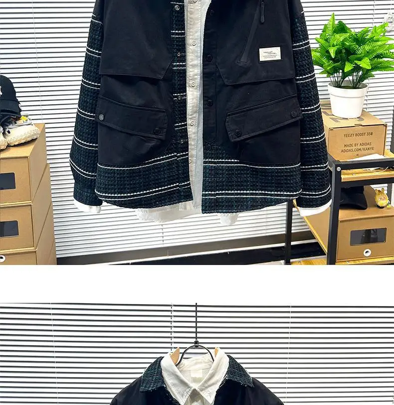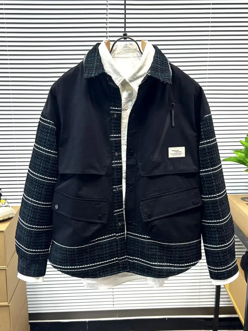 Giacca da camicia casual da uomo, vestibilità ampia, stile due pezzi, capispalla versatile e alla moda