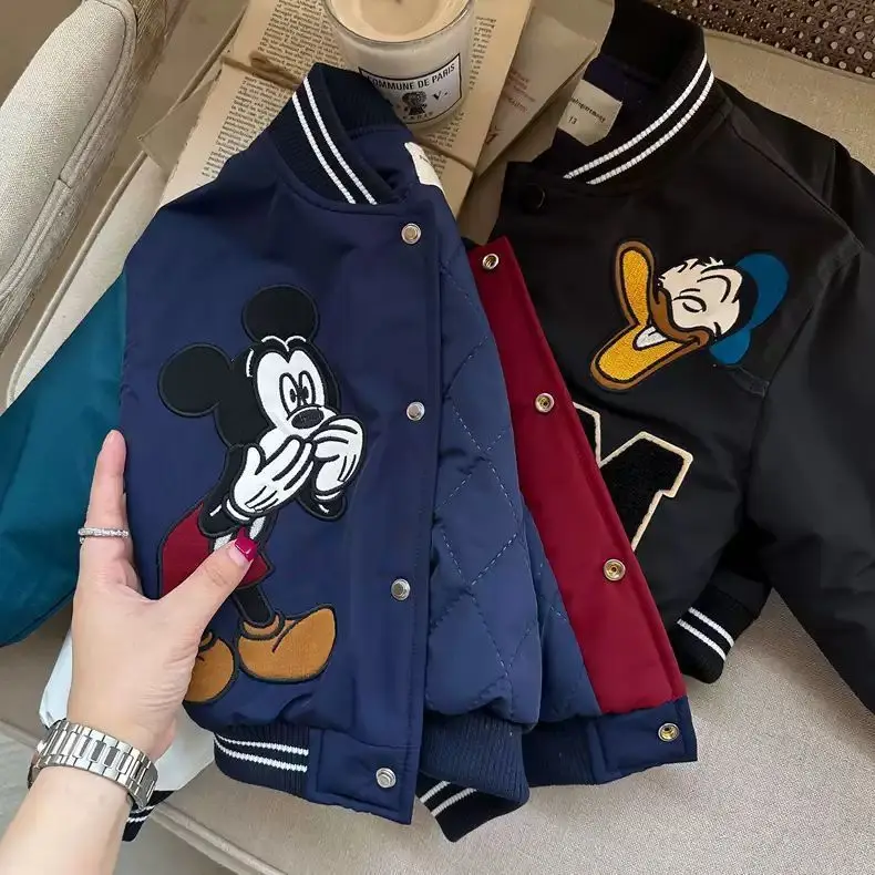 Giacca da cartone animato per bambini con stampa di Topolino Autunno Inverno Bambini Ragazzi Ragazze Cappotto trapuntato Abiti da baseball caldi Capispalla moda per bambini