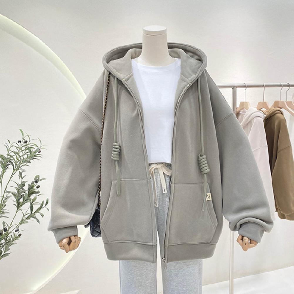 Comoda giacca da donna tinta unita capispalla da donna elegante giacca con cappuccio da donna oversize calda spessa Casual per l’autunno/inverno