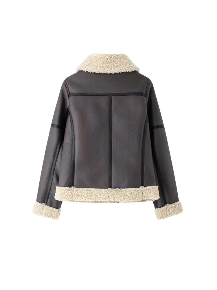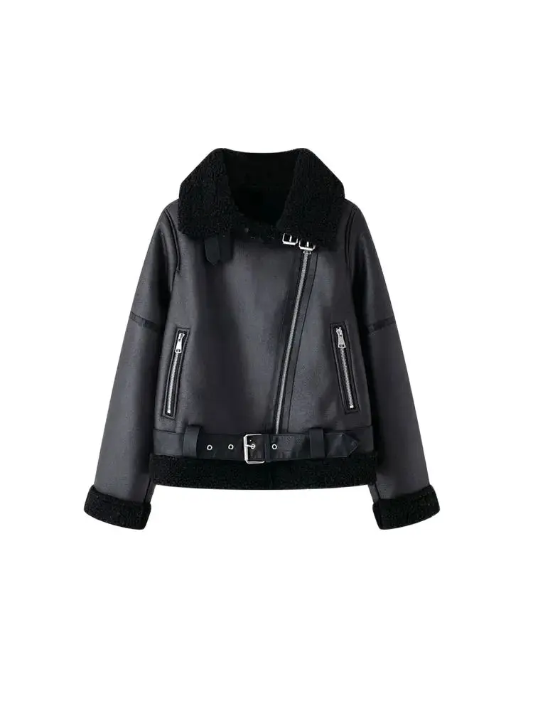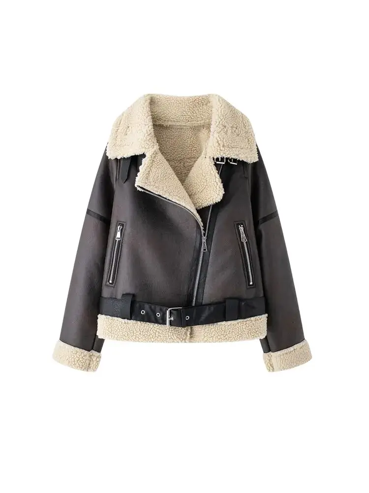 Giacca da donna in pelle scamosciata calda e spessa con cintura, cappotti a maniche lunghe, tosatura finta, capispalla femminile, top chic, moda invernale