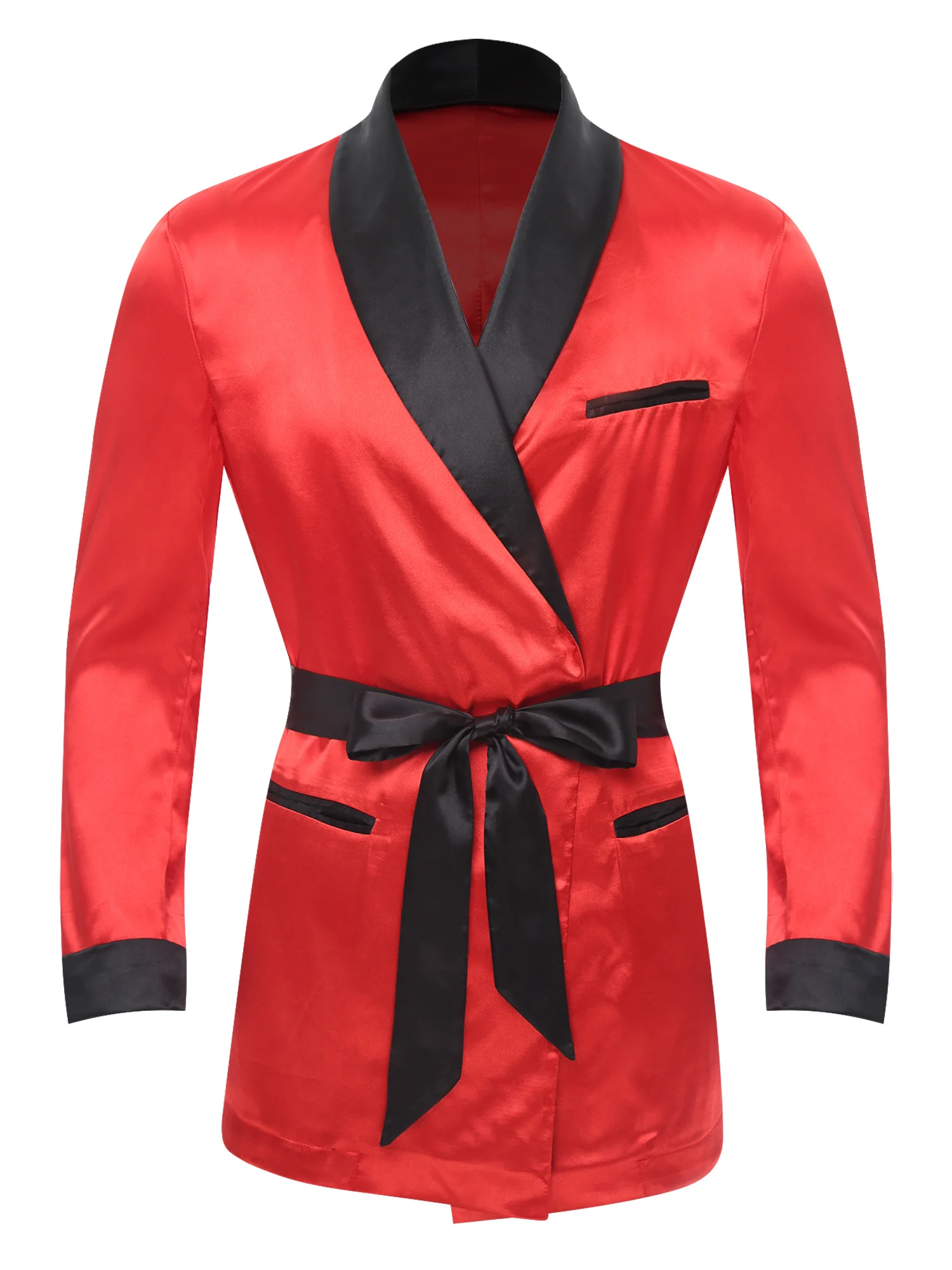 La veste da giacca da fumo satinata può abbinare con gilet, canottiera, pantaloni pigiama e pantaloncini, ti consentono di goderti l’ora rilassante al più pieno.
