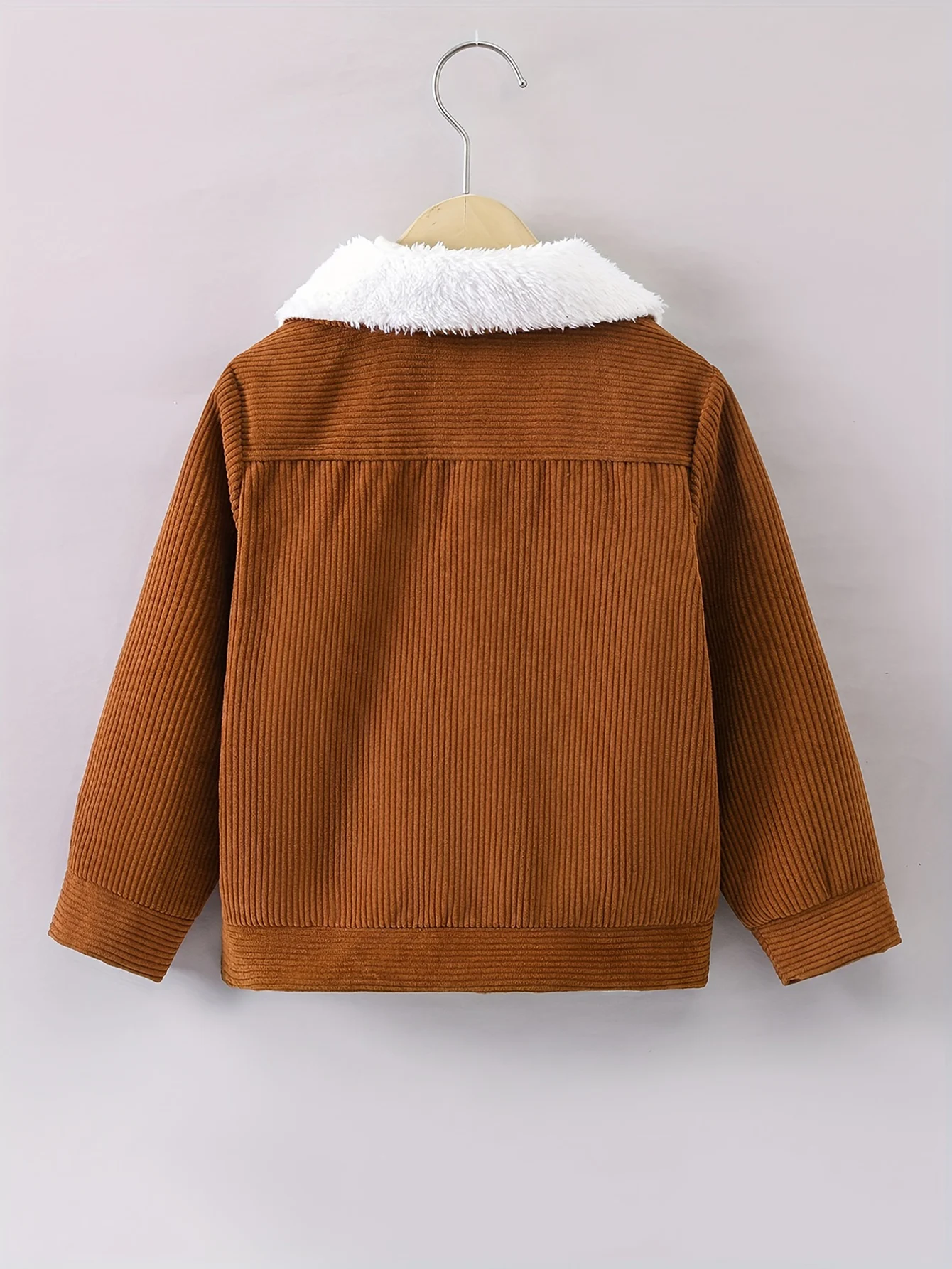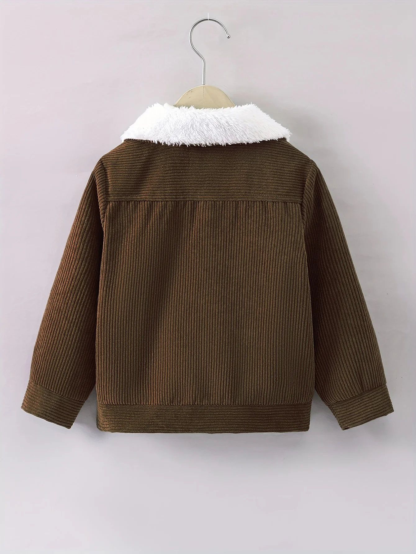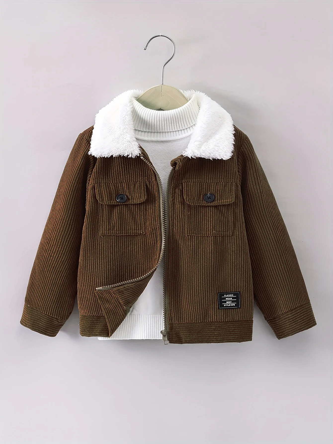 Giacca da giacca sottile cardigan con cerniera e colletto in pile con giunture in tessuto di velluto a coste alla moda da ragazzo