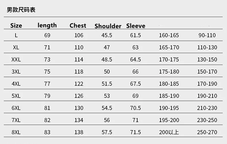 Si prega di notare l’altezza del peso quando si effettua l’ordine se non si è sicuri della propria taglia