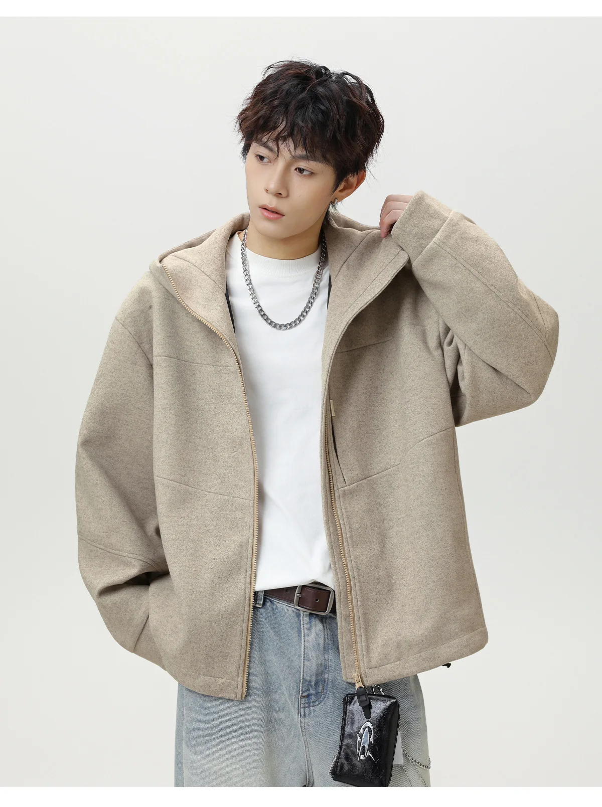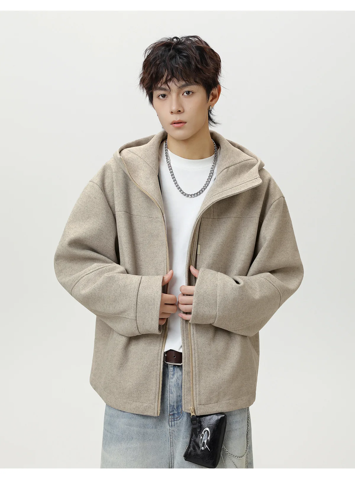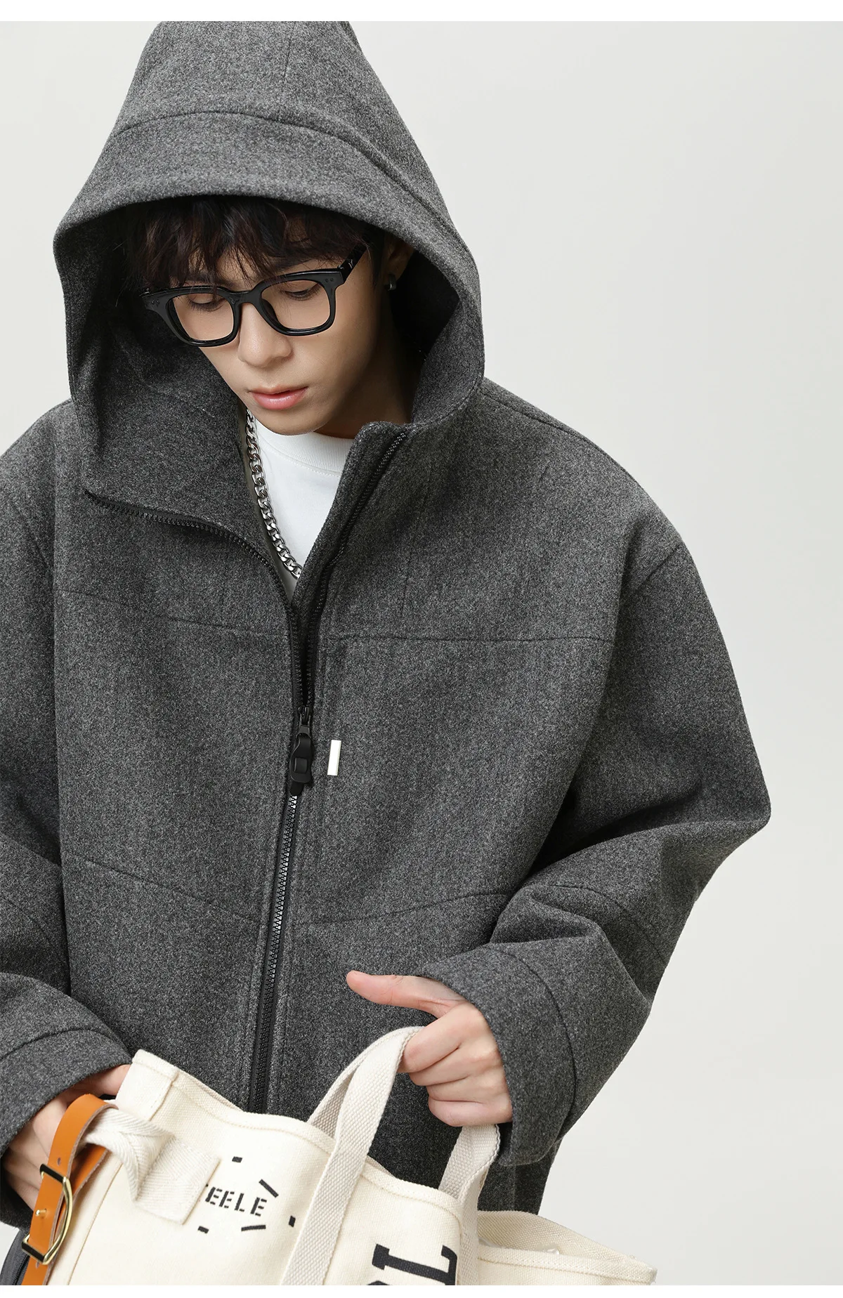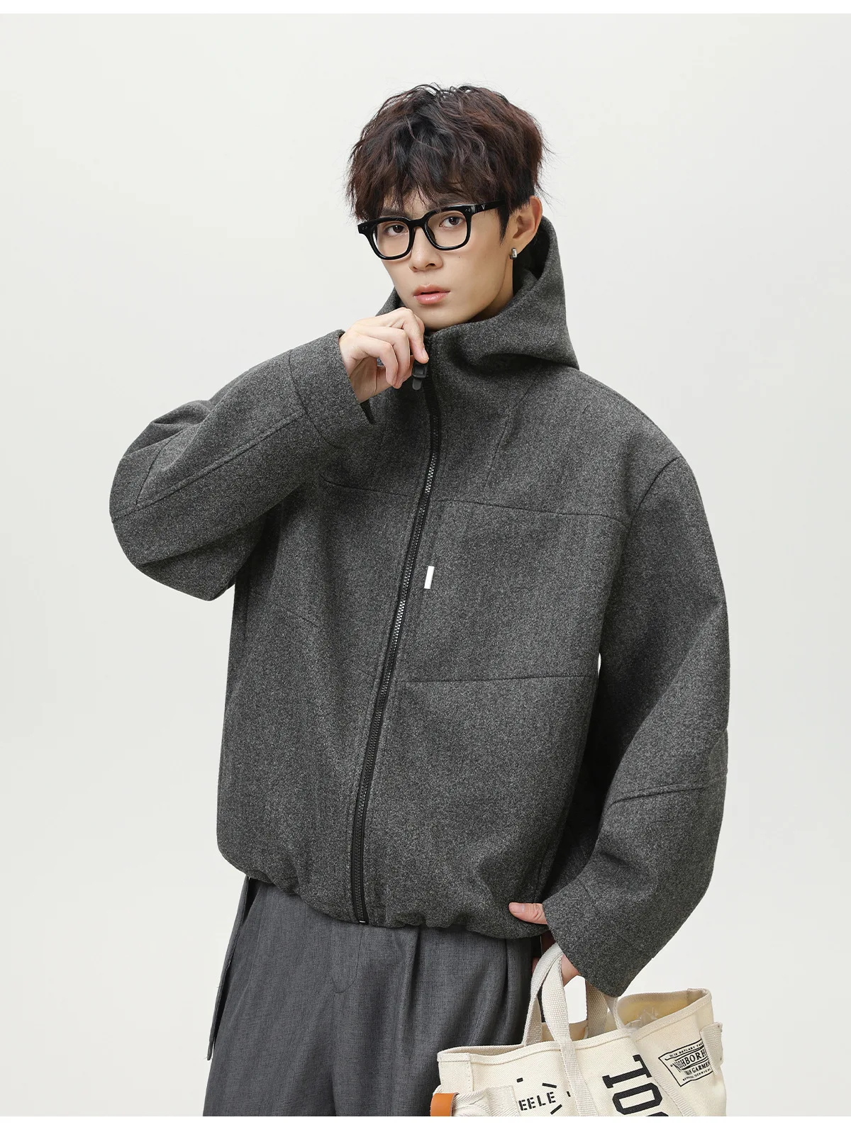 Giacca da lavoro in tweed da uomo autunno/inverno nuova giacca corta con cappuccio ampia silhouette ispessita calda per pendolarismo
