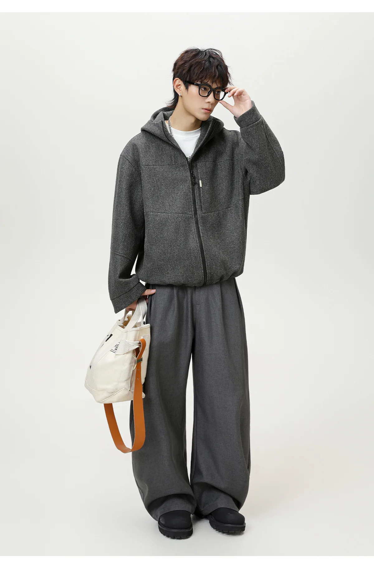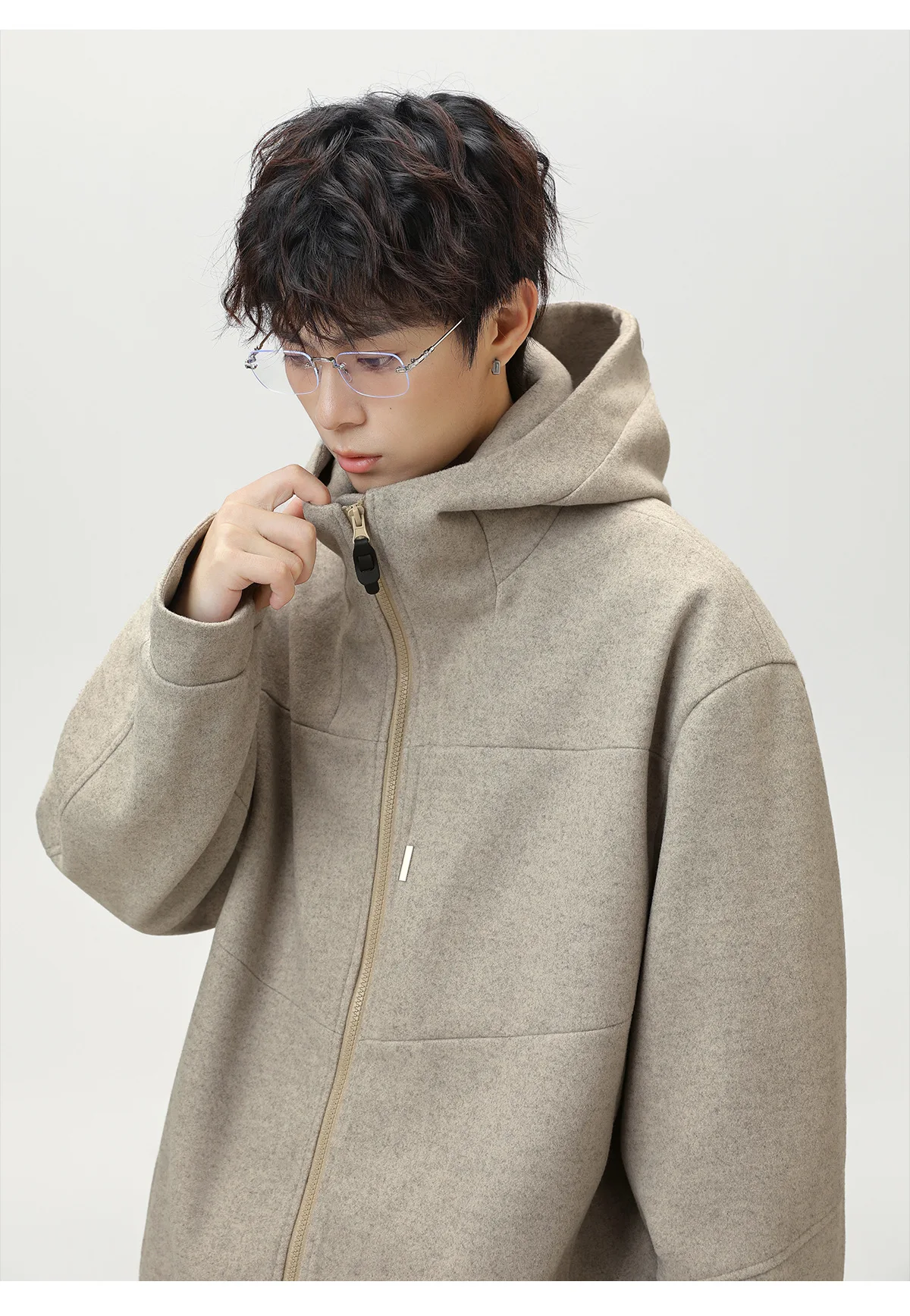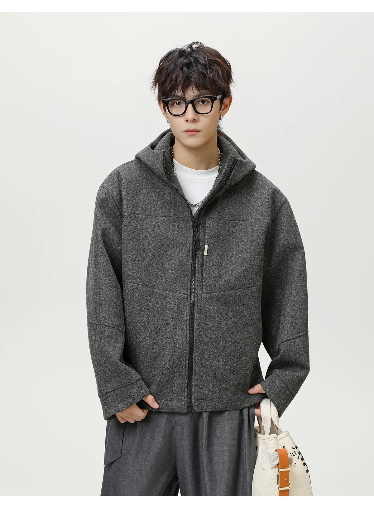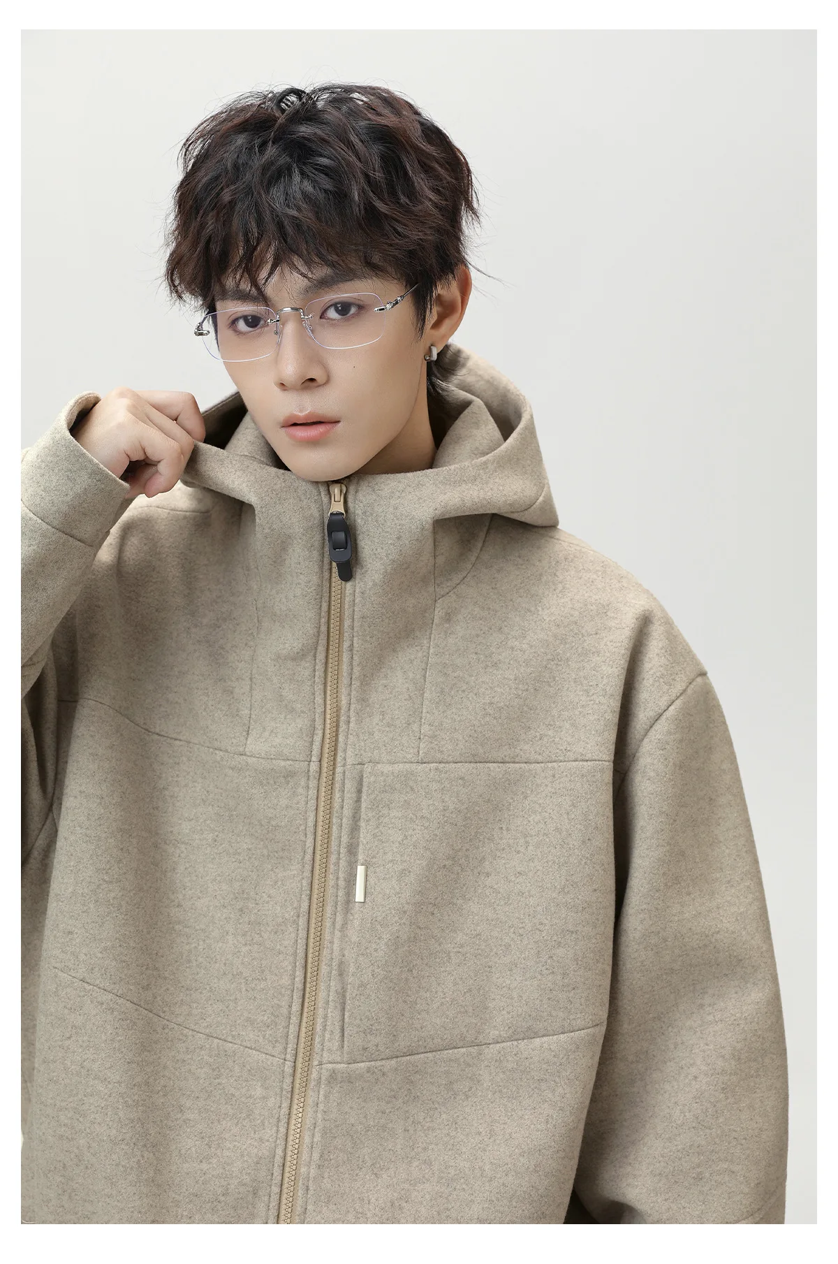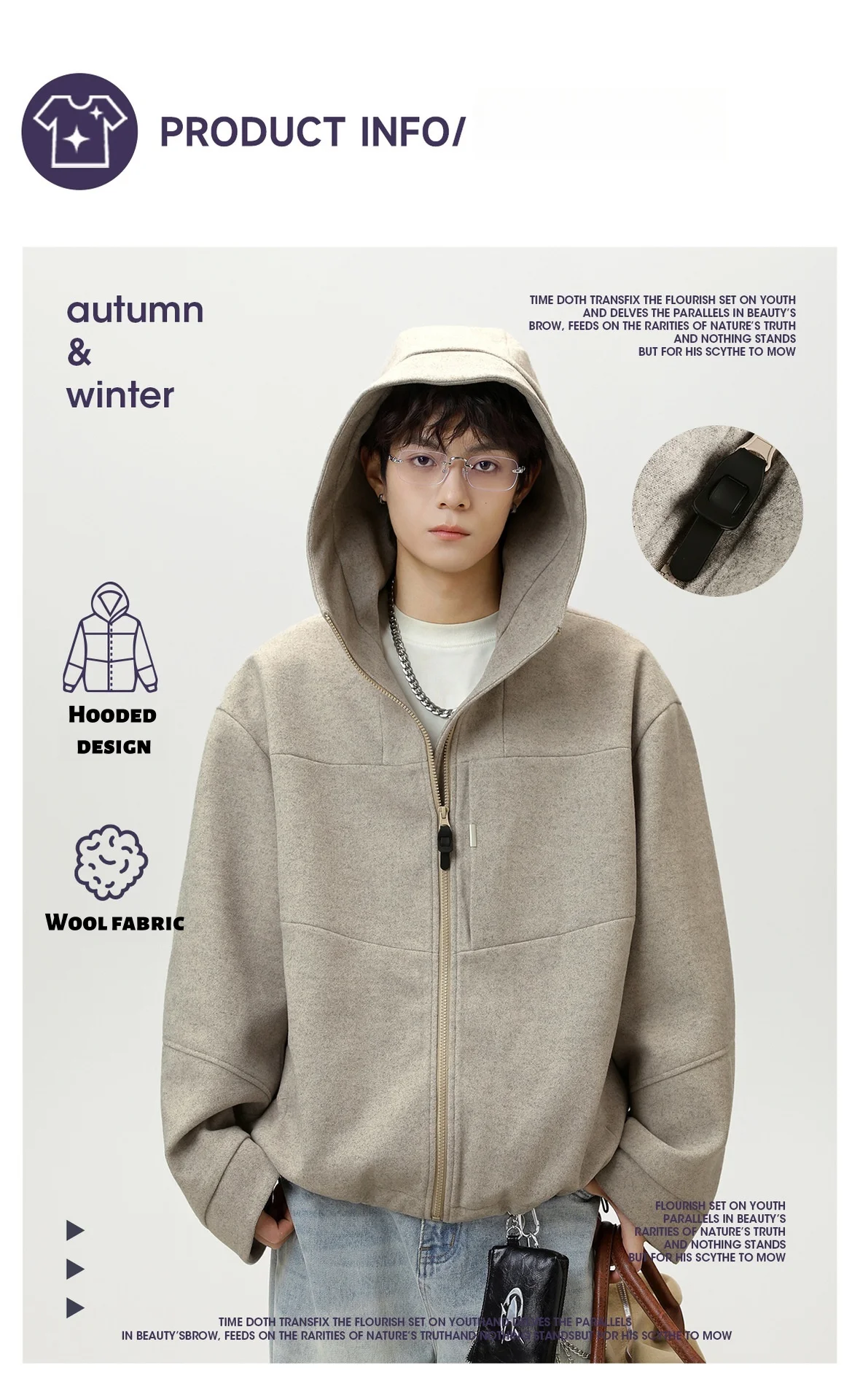 Giacca da lavoro in tweed da uomo autunno/inverno nuova giacca corta con cappuccio ampia silhouette ispessita calda per pendolarismo