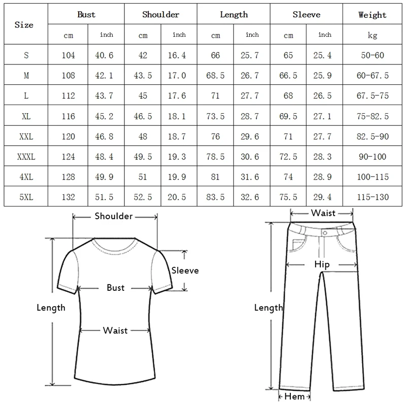 5XL = Busto 132 cm, Lunghezza 83,5 cm, Spalla 52,5 cm, Per peso 115-130 kg;