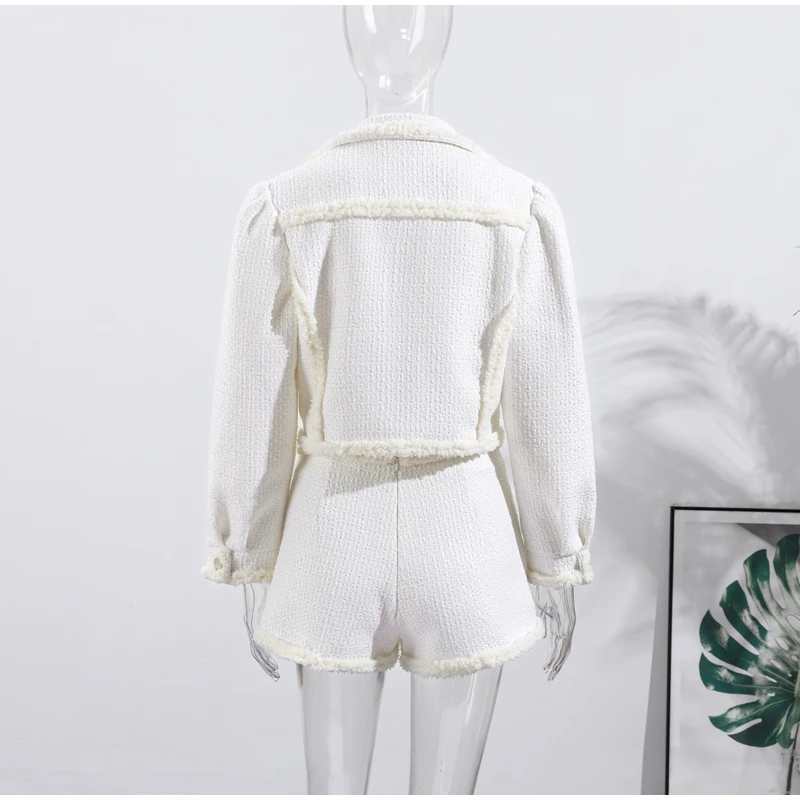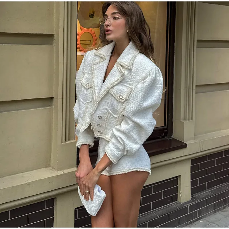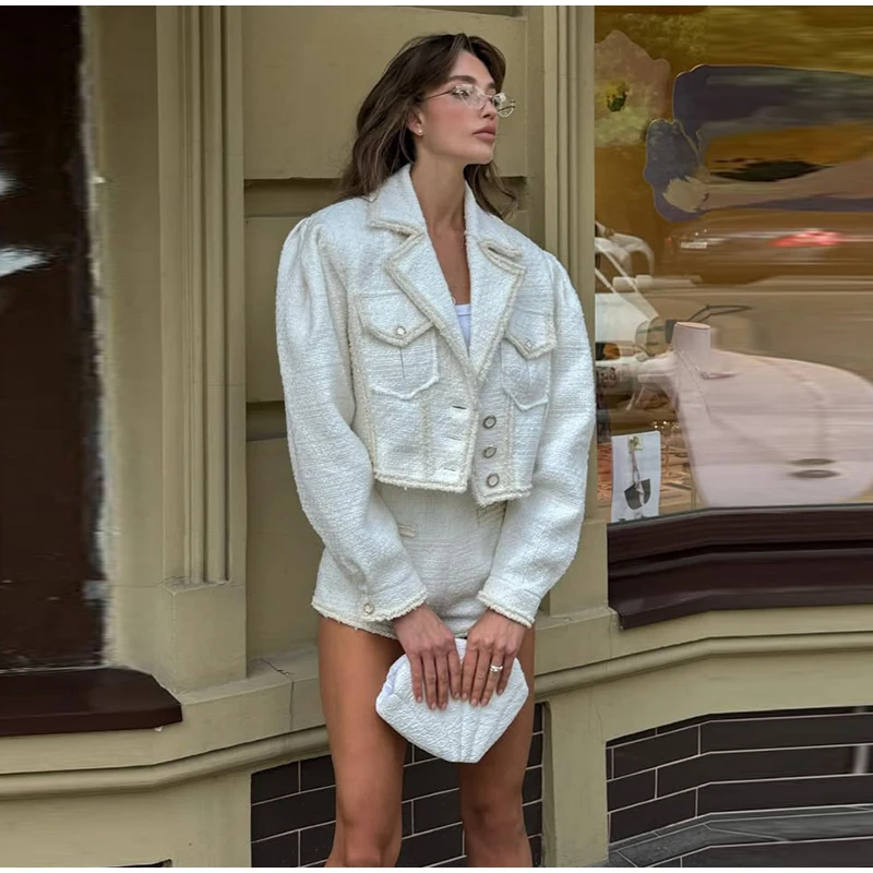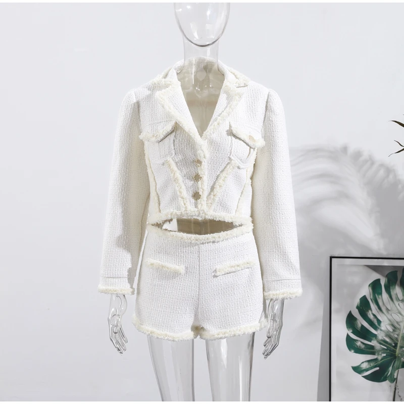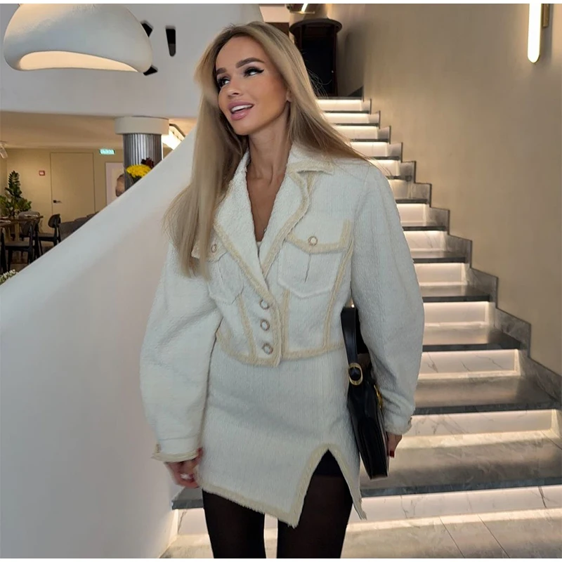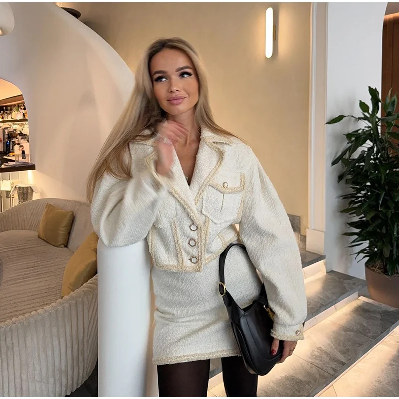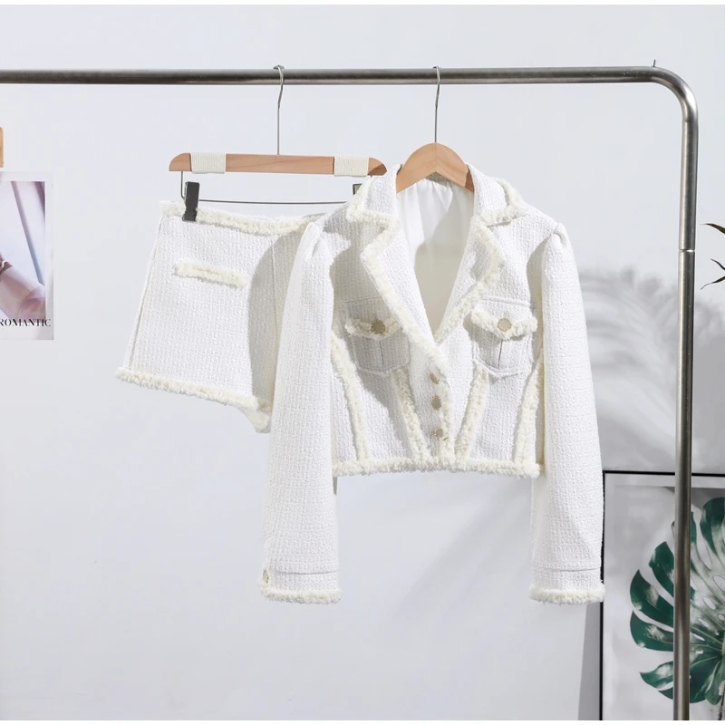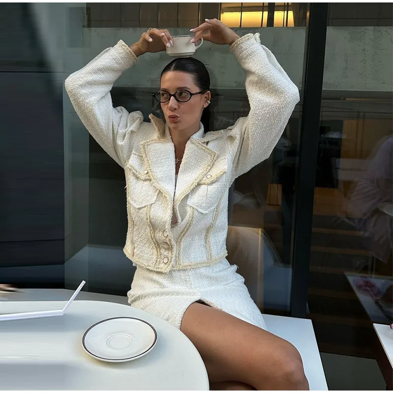 Abbigliamento da donna autunno inverno Nuovo articolo Tinta unita Moda monopetto Top corto Abito slim fit Set da due pezzi