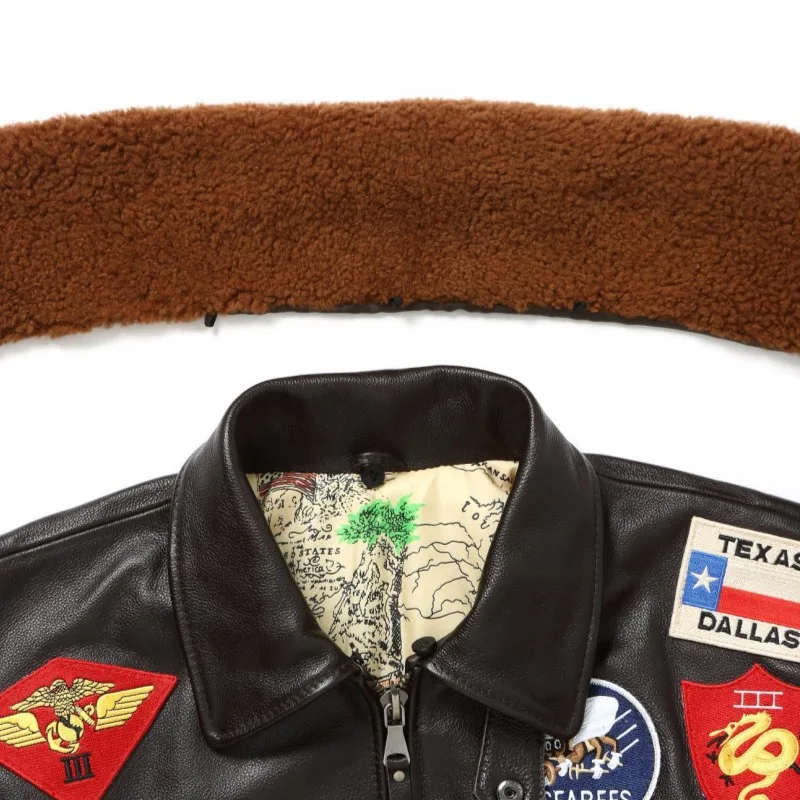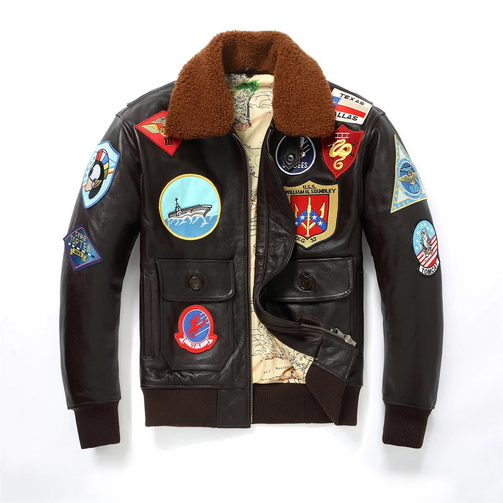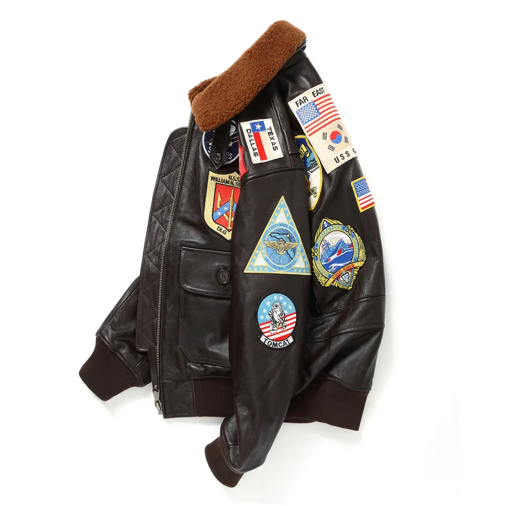Tom Cruise Top Gun Patched G-1 Flight Bomber Giacca in pelle marrone