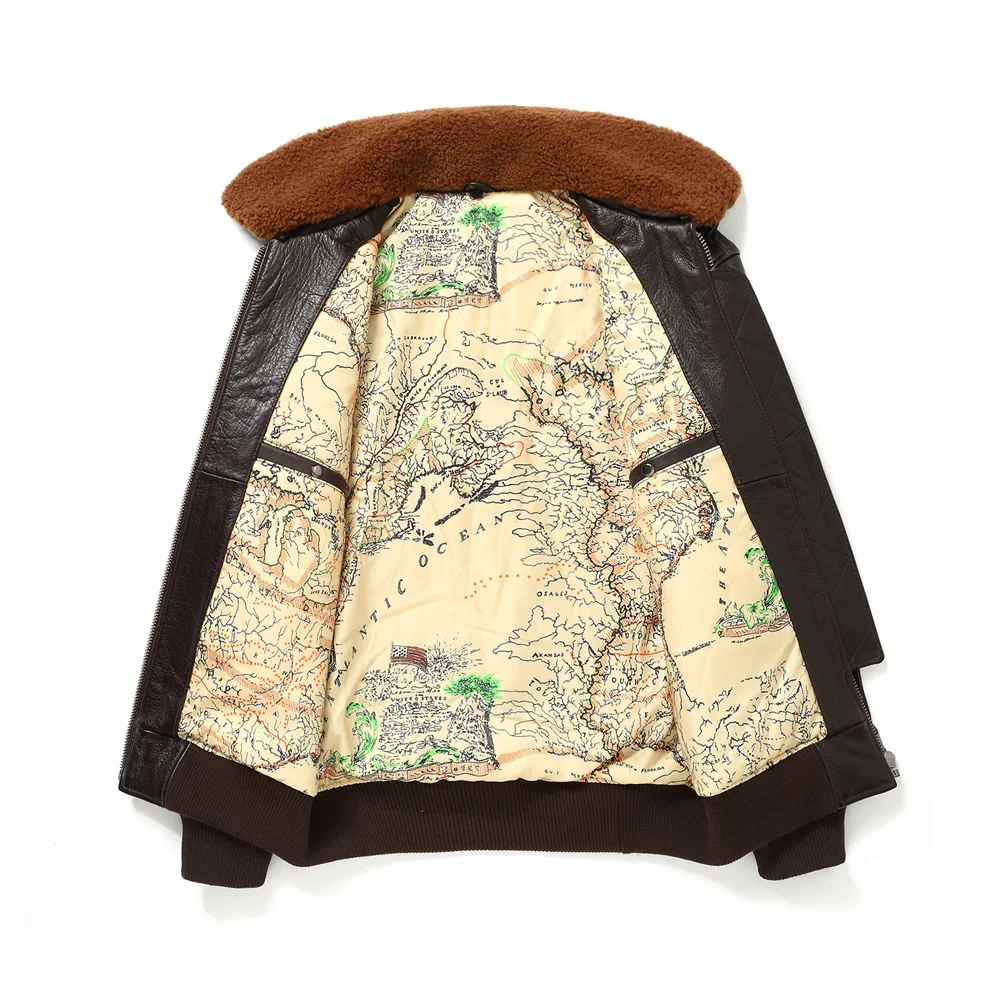 Giacca da pilota invernale in pelle marrone scuro da uomo stile militare taglia europea Cappotto in vera pelle di vacchetta spessa naturale G1