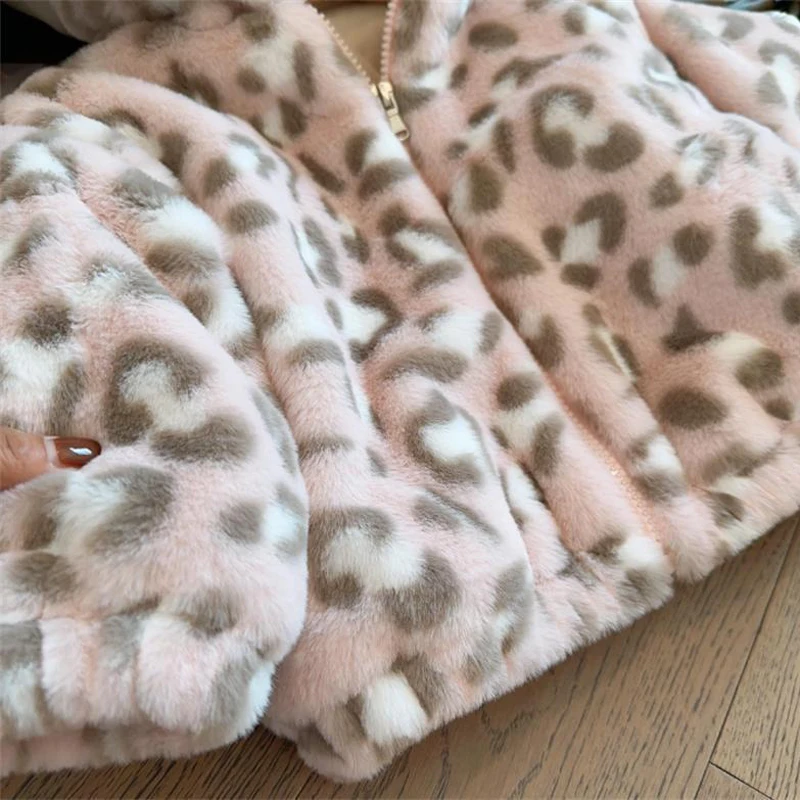 Giacca da ragazza in pelliccia sintetica invernale nuova stampa leopardata in pile double face spesso caldo cappotto con cerniera con cappuccio per 2-8 anni tuta da neve moda per bambini 1Giacca da ragazza in pelliccia sintetica invernale nuova stampa leopardata in pile double face spesso caldo cappotto con cerniera con cappuccio per 2-8 anni tuta da neve moda per bambini