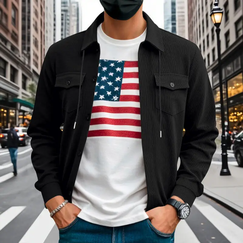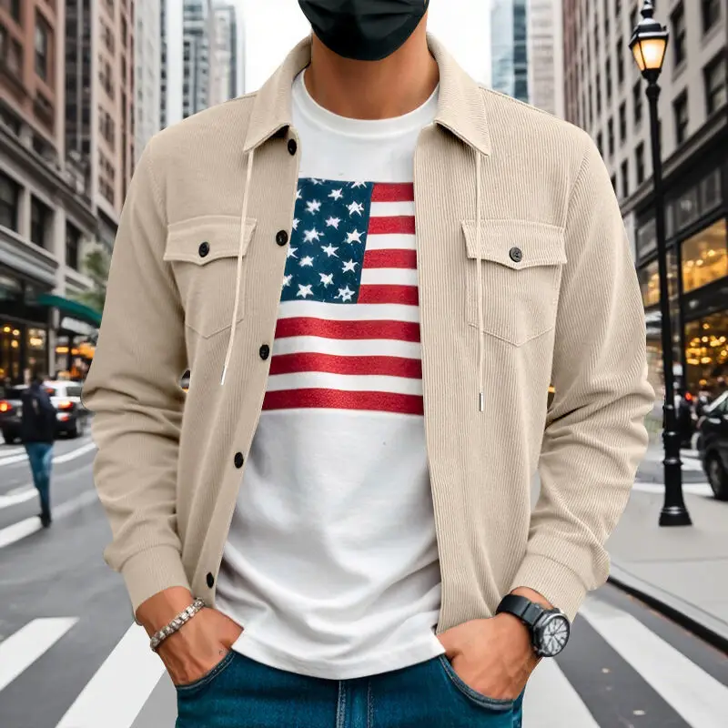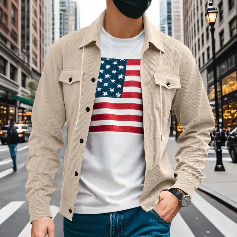 Questa giacca presenta un versatile design multitasche, che offre ampio spazio per i tuoi oggetti essenziali aggiungendo un tocco robusto.
