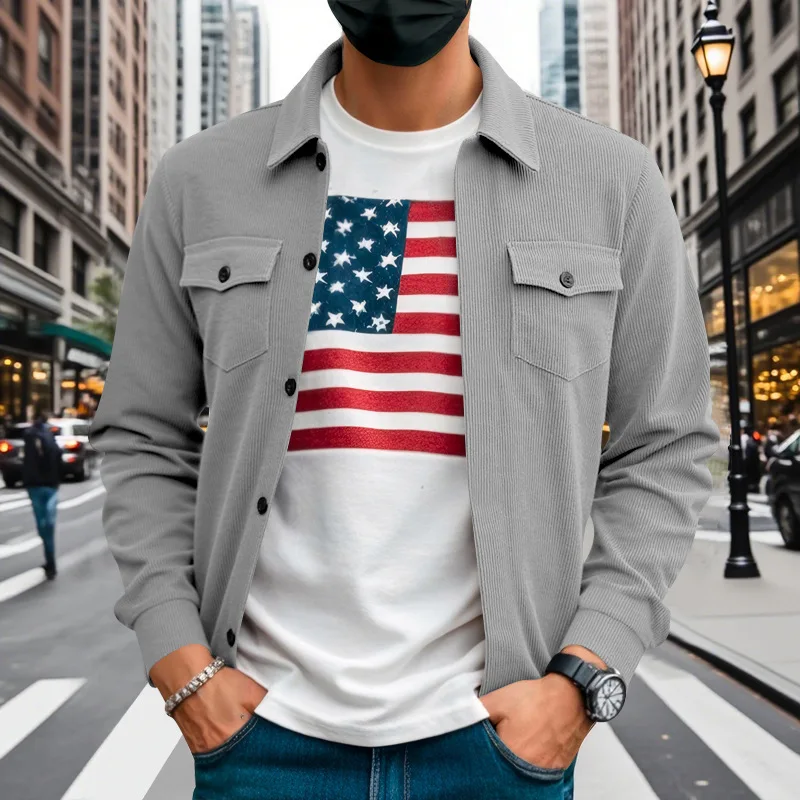 Questa giacca presenta un versatile design multitasche, che offre ampio spazio per i tuoi oggetti essenziali aggiungendo un tocco robusto.
