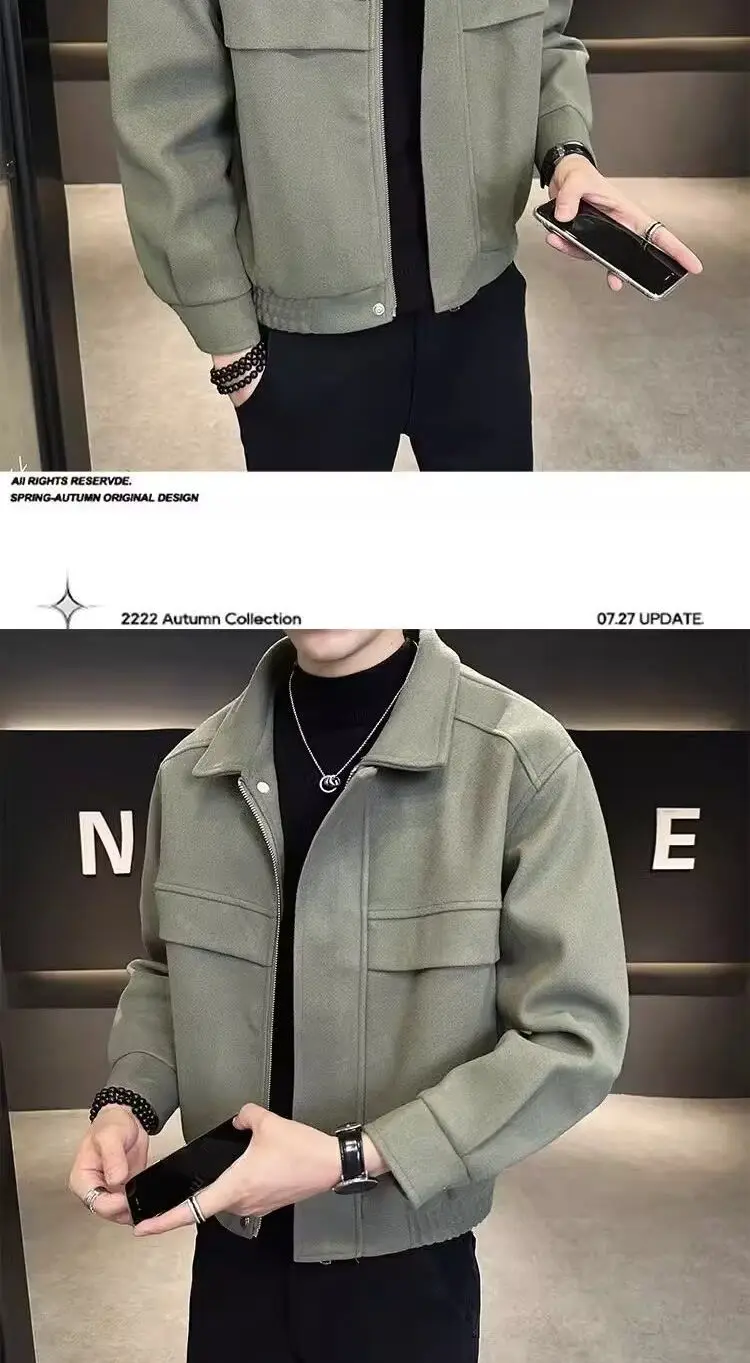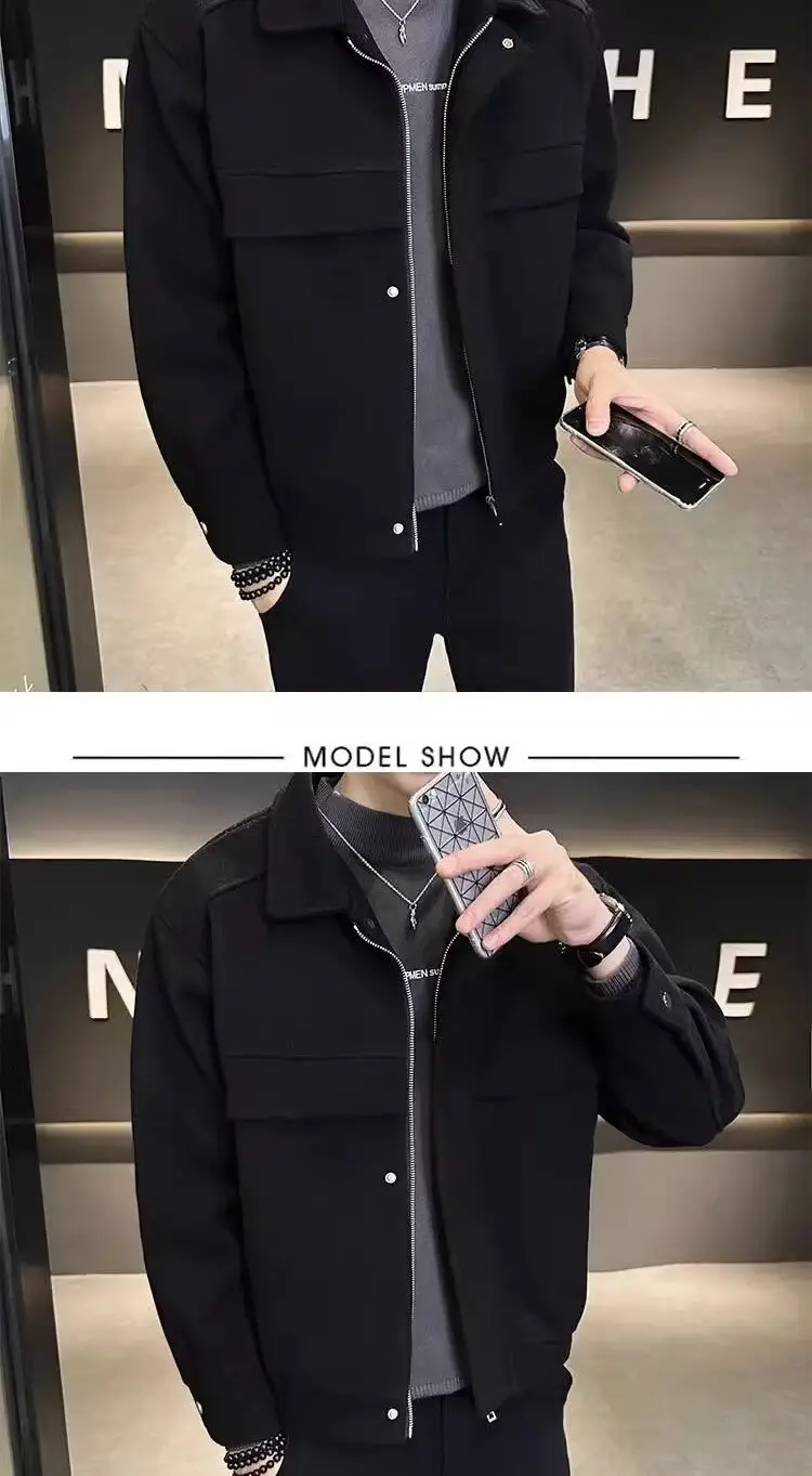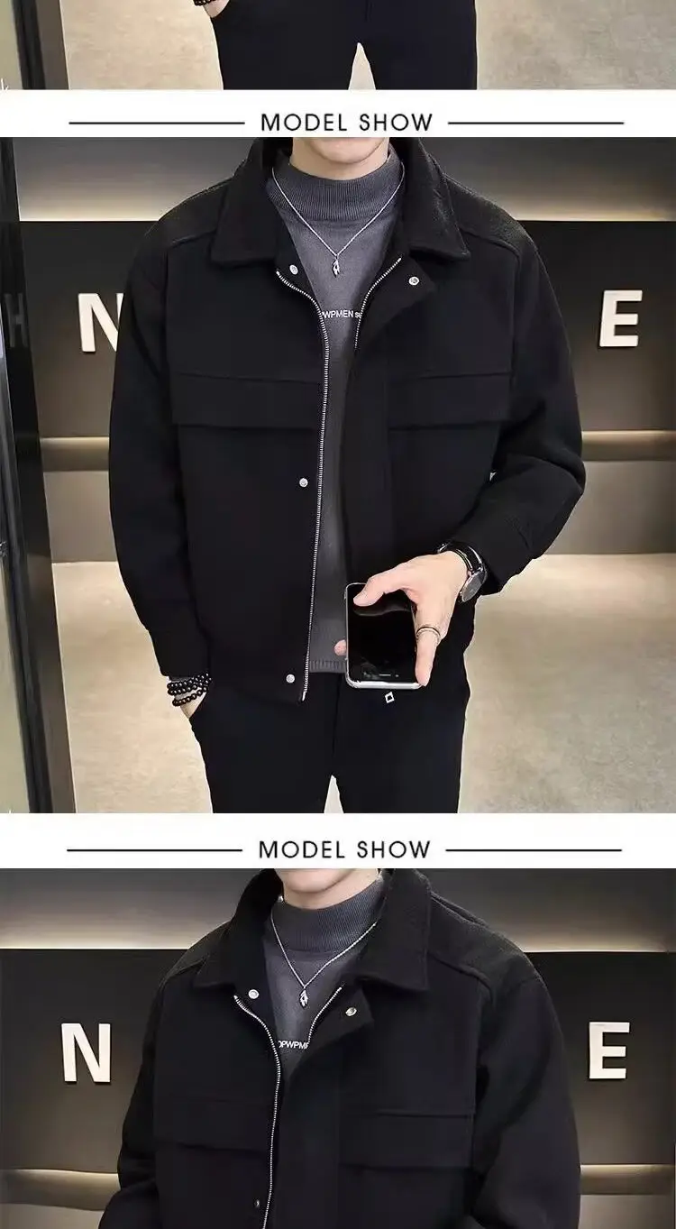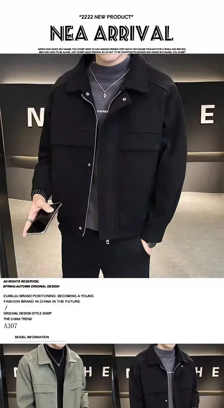 Giacca da uomo coreana casual in tweed con trench corto primavera autunno ispessito in cotone