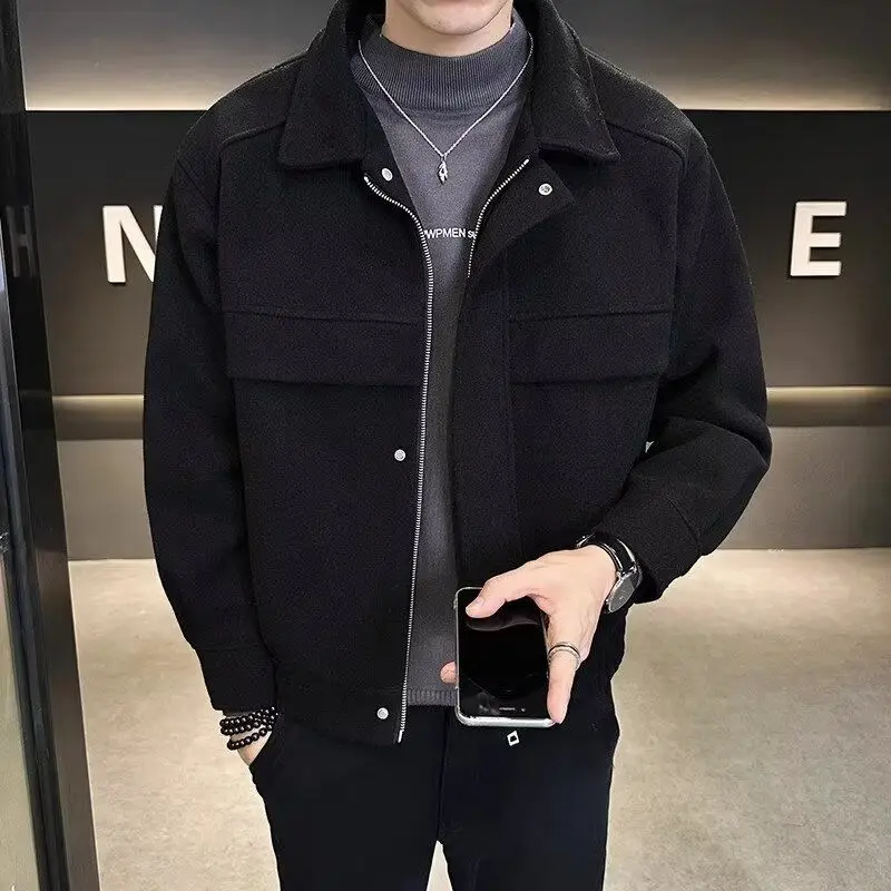 Giacca da uomo coreana casual in tweed con trench corto primavera autunno ispessito in cotone