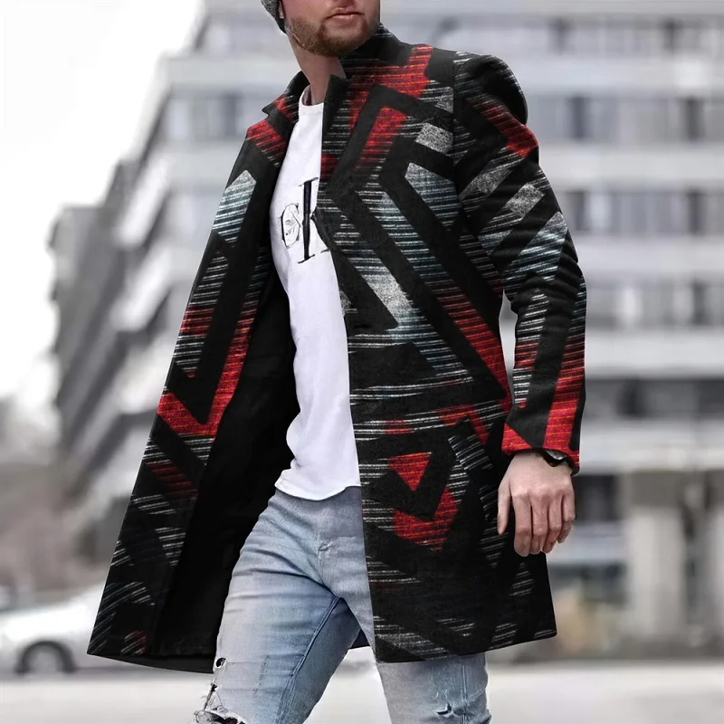 Giacca da uomo in lana Giacca moda a righe con stampa geometrica Abbigliamento da uomo giovane Autunno Inverno Cappotto monopetto con tasca Capispalla