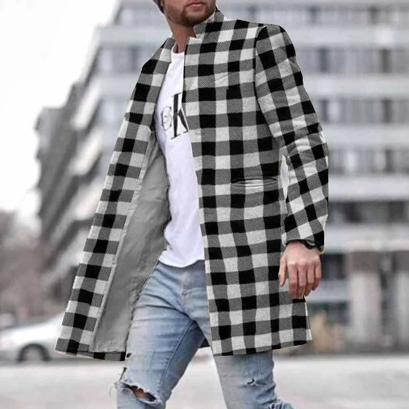 Casual 2025 Cappotti di lana scozzesi di media lunghezza da uomo invernale Business Warm Top Cappotto Outwear Giacca a vento di lana addensata in cotone
