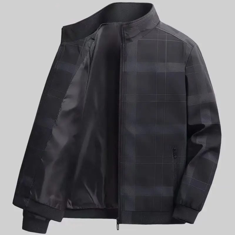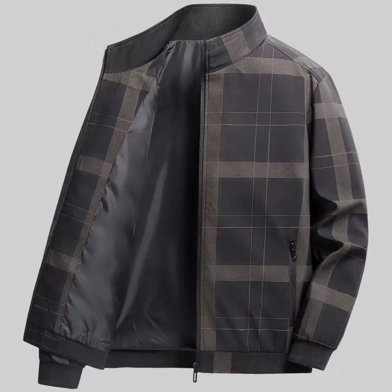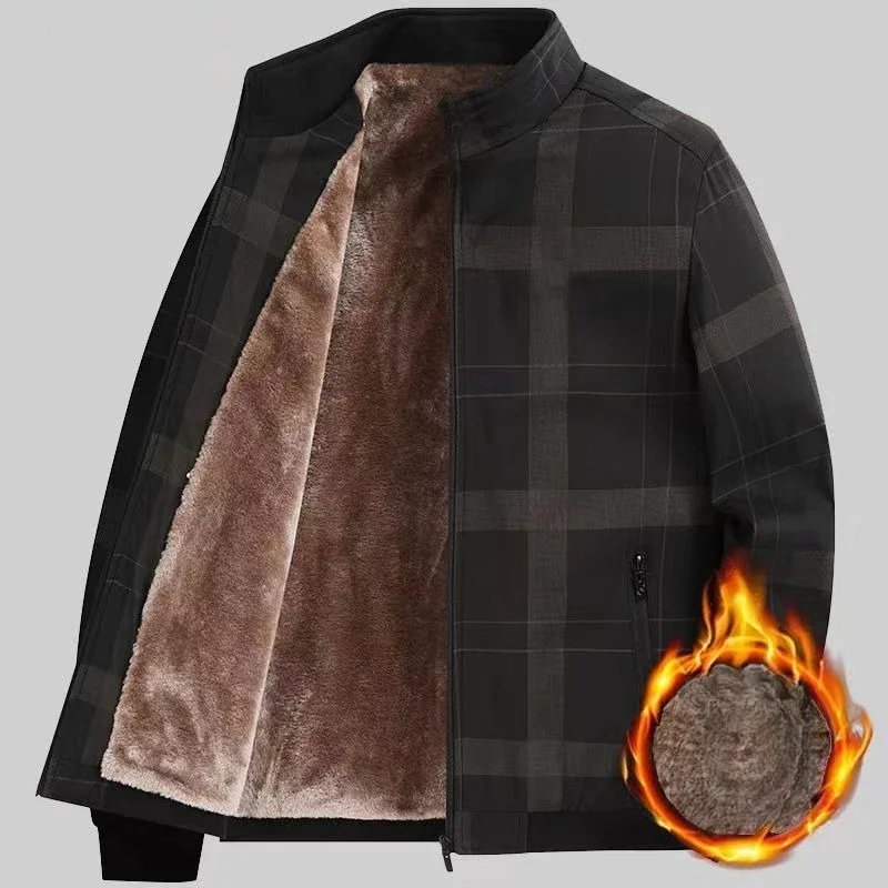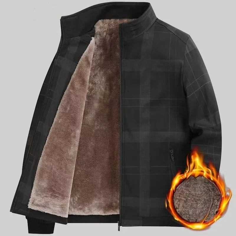 Giacca da uomo in pile scozzese da lavoro 2025 Autunno Inverno Colletto alla coreana Giacche Slim Fit Luxury Full Zip Up Cappotti Cappotto da uomo