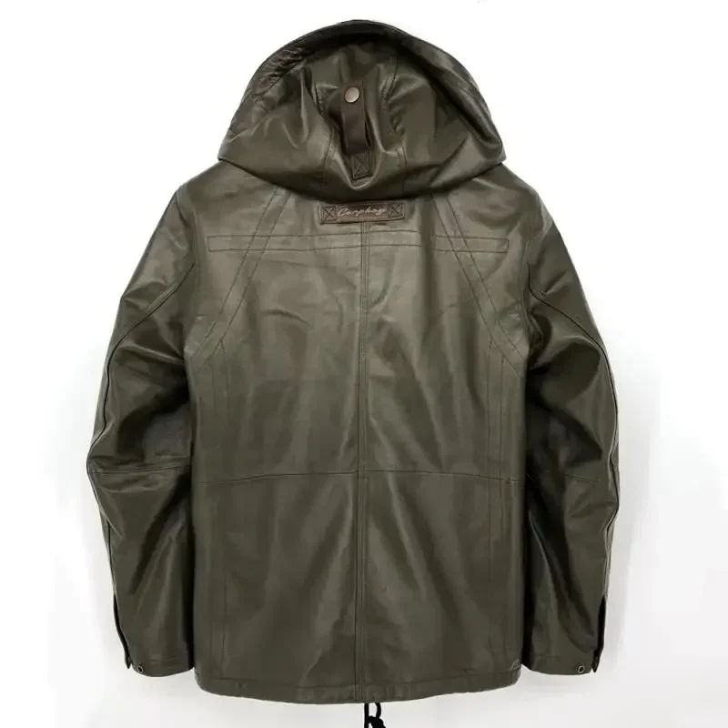 Giacca da uomo in vera pelle di agnello in vera pelle di pecora militare con cappuccio per uomo primavera autunno autunno verde plus size xxxxxl