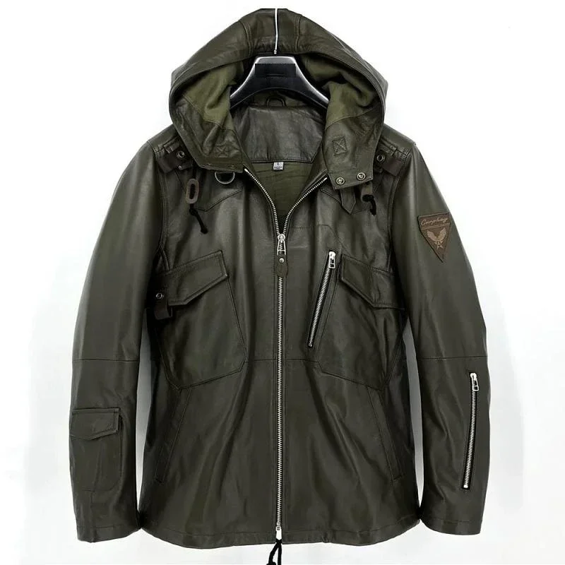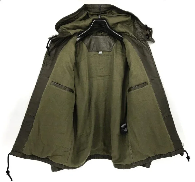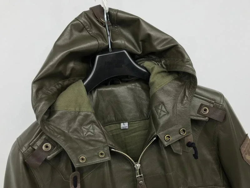 Giacca da uomo in vera pelle di agnello in vera pelle di pecora militare con cappuccio per uomo primavera autunno autunno verde plus size xxxxxl 1Giacca da uomo in vera pelle di agnello in vera pelle di pecora militare con cappuccio per uomo primavera autunno autunno verde plus size xxxxxl