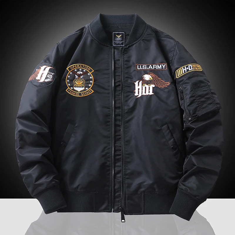 Giacca da volo Eagle Abbigliamento da lavoro da uomo Primavera e autunno Pilota Uniforme da baseball Tuta da volo tattica Ricamo Industria pesante Nero
