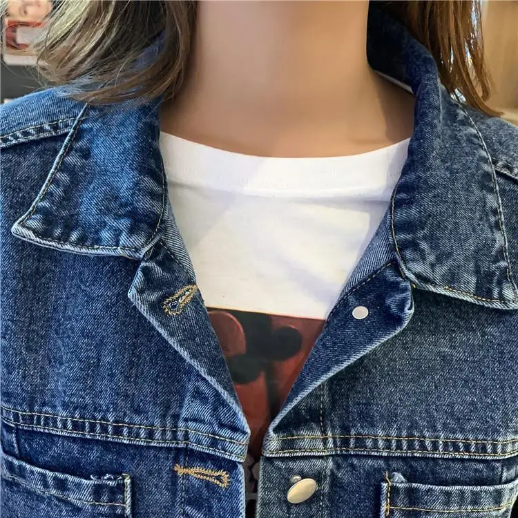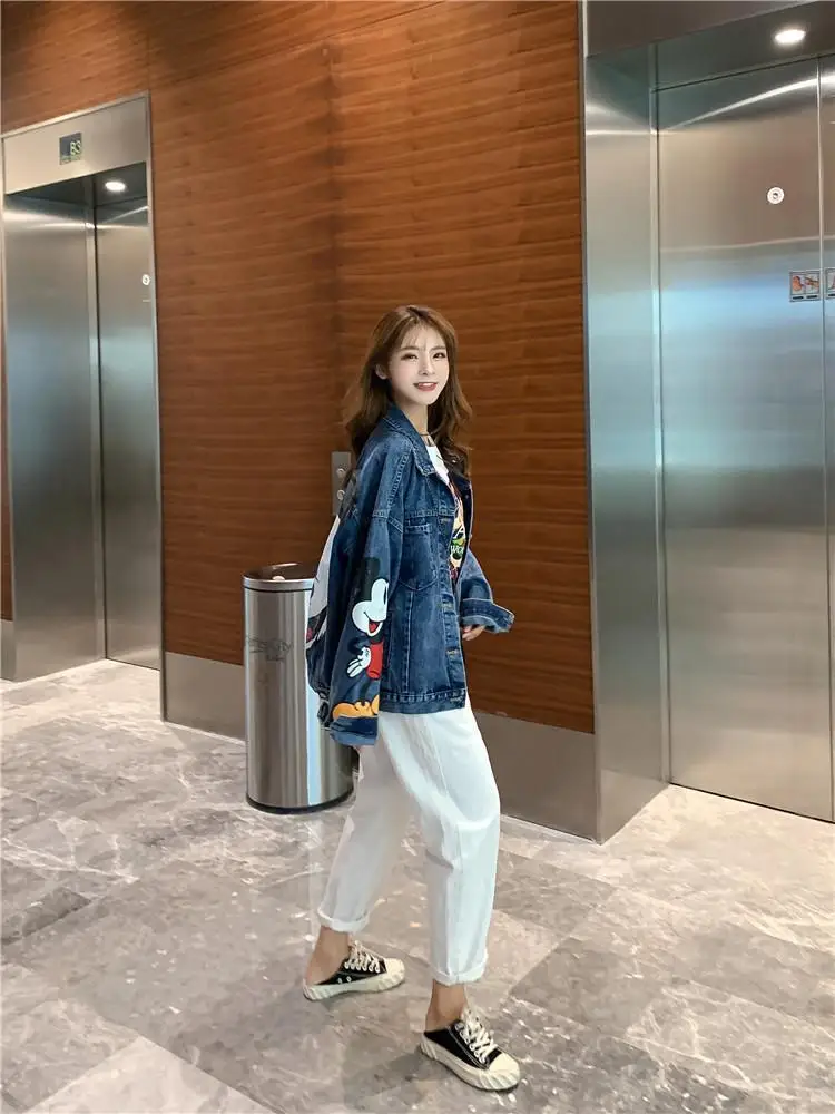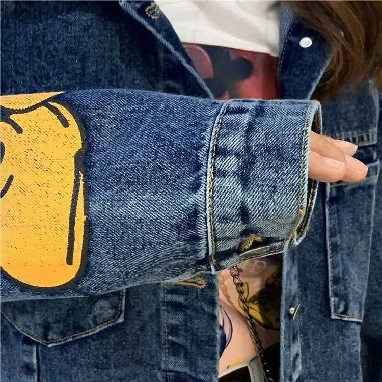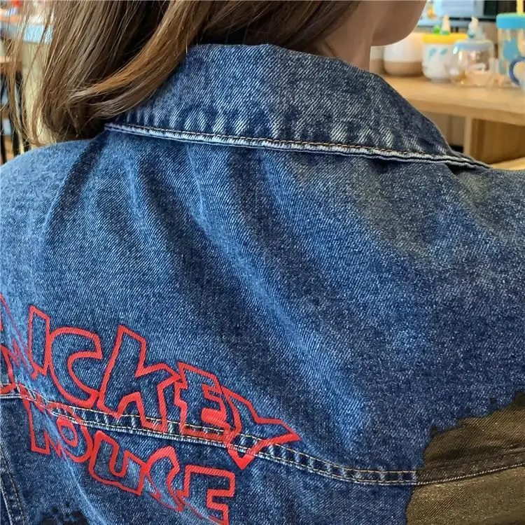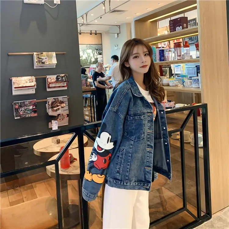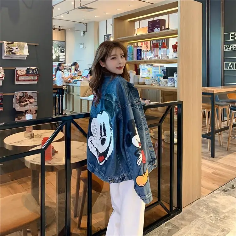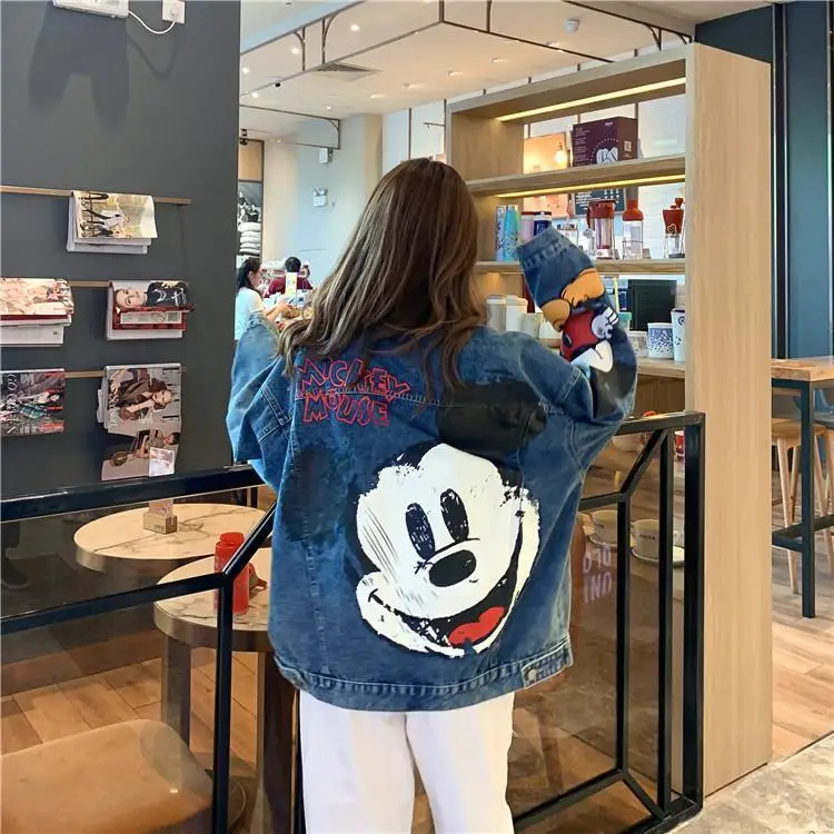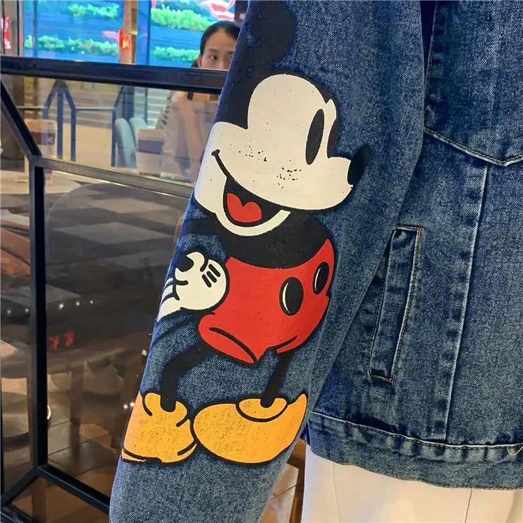 Giacca di jeans stampata Disney da donna primavera e autunno versione coreana ampia stile di grandi dimensioni vestiti di jeans di Topolino