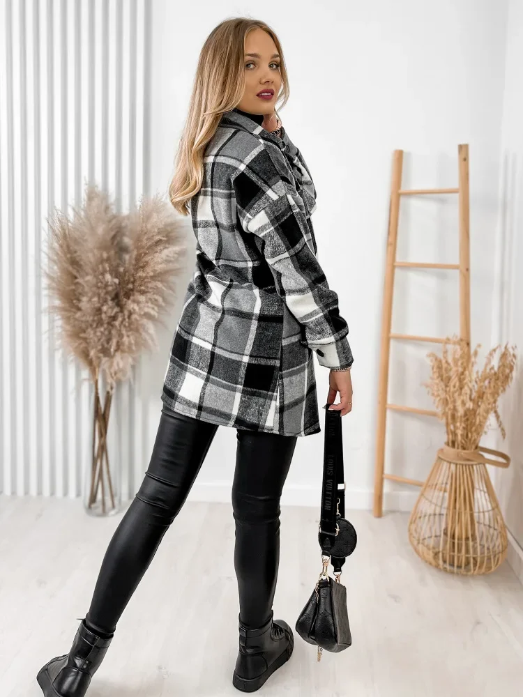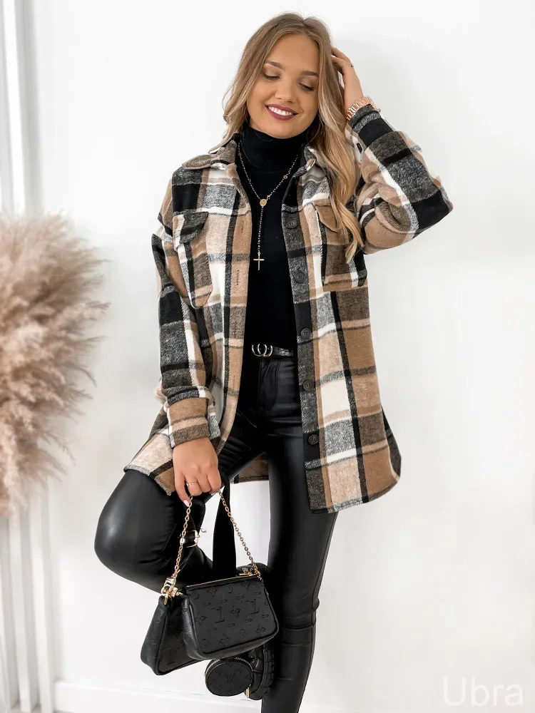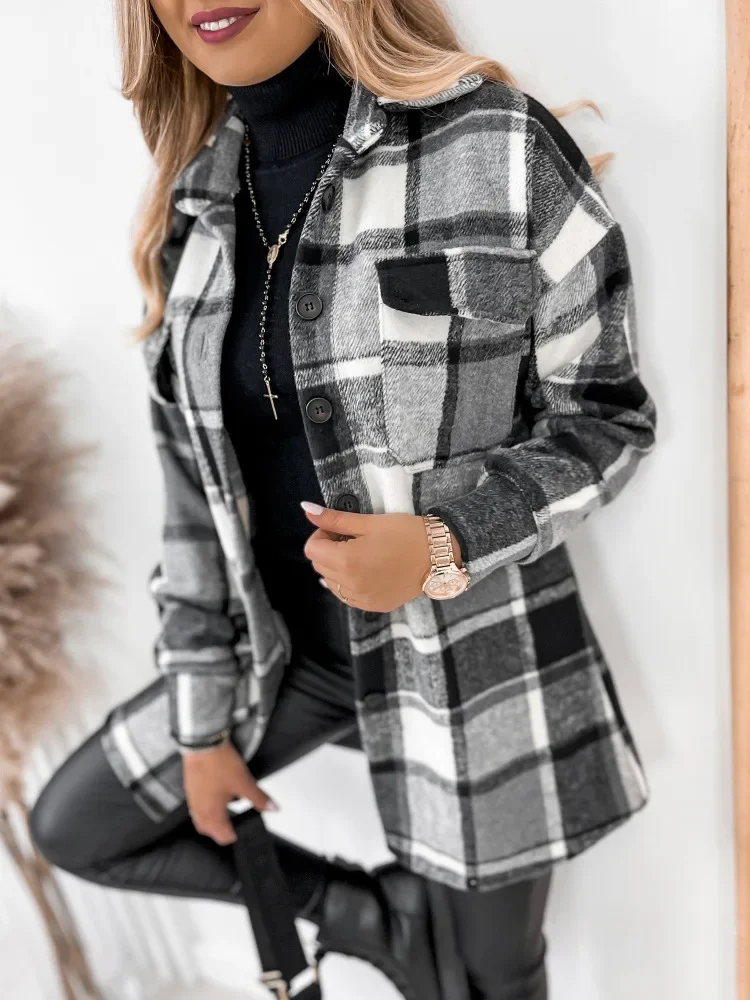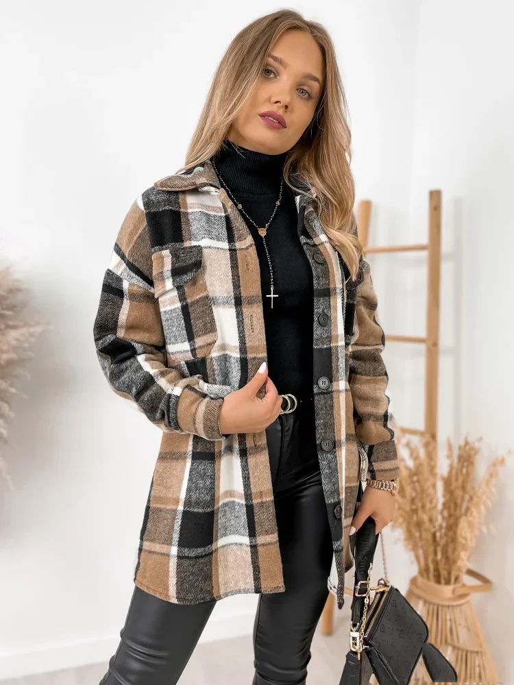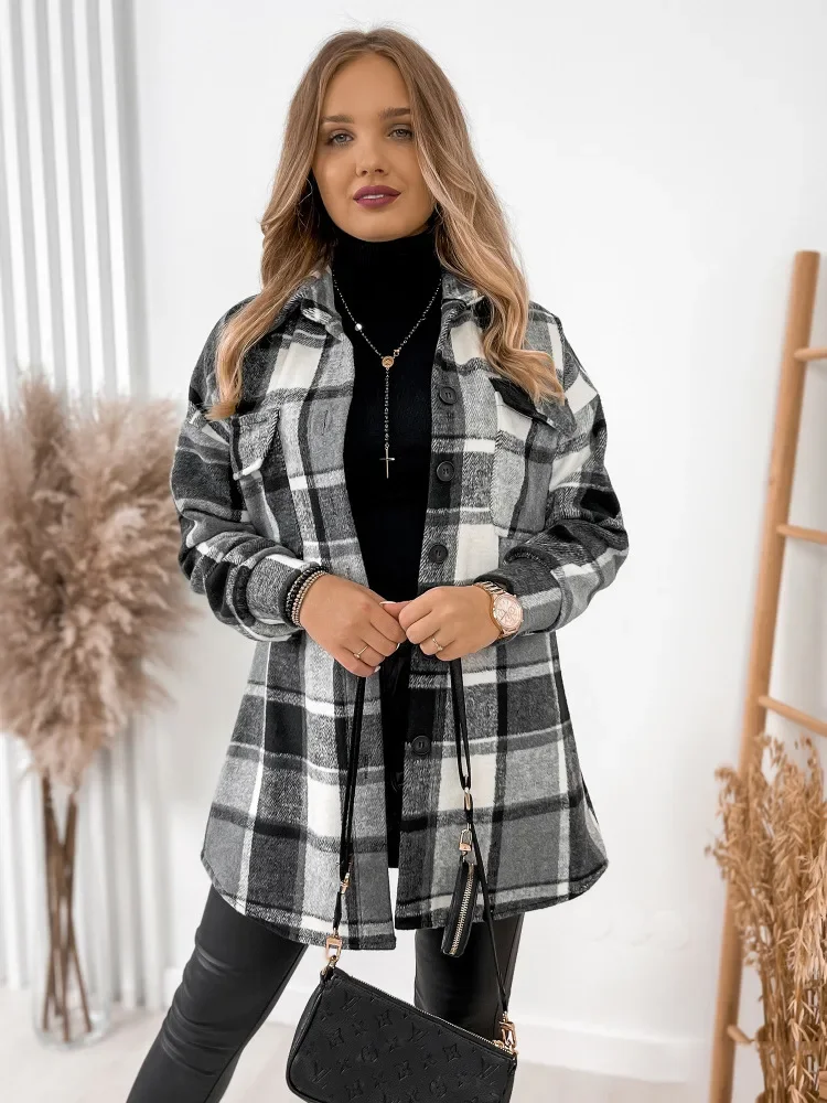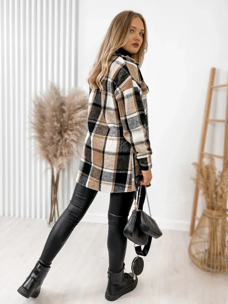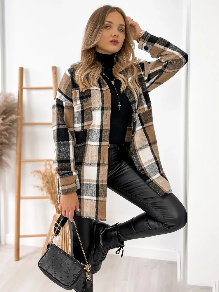 Giacca di lana con colletto a camicia stampato scozzese monopetto a maniche lunghe nuova taglia S-2XL da donna camisas camisas de mujer