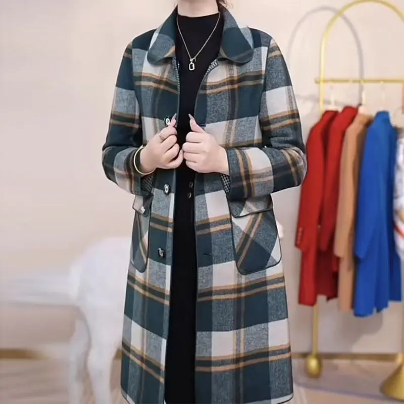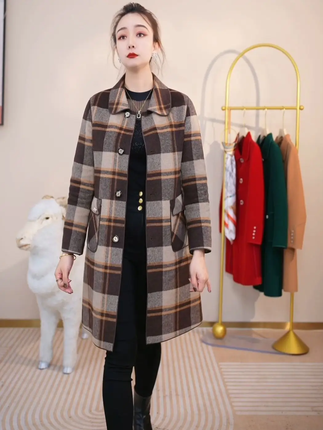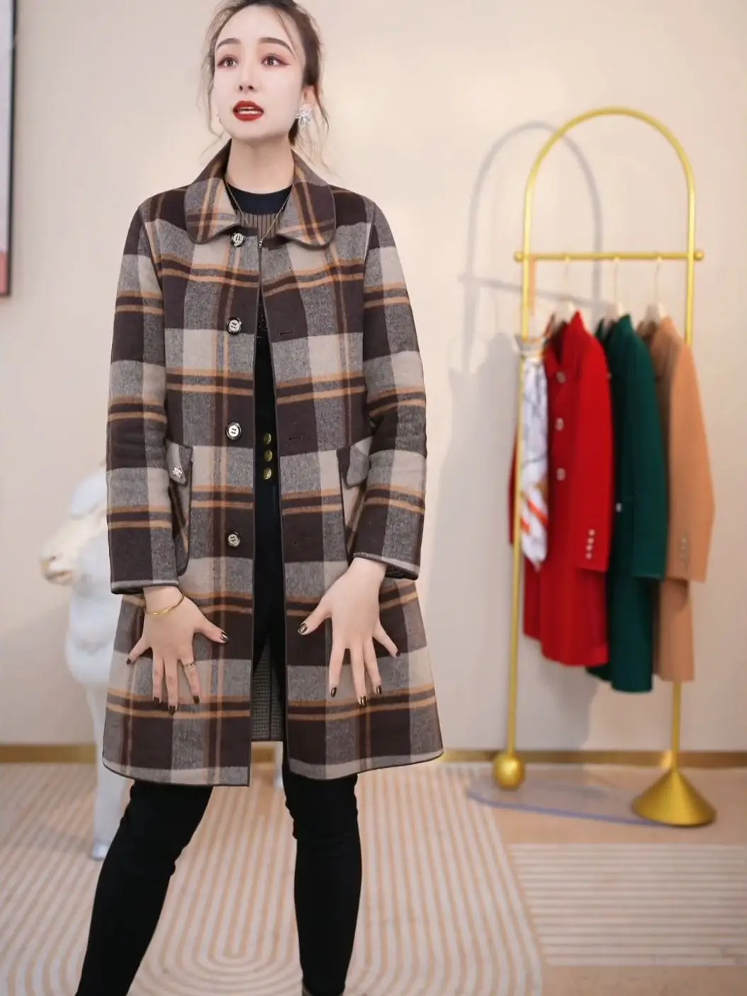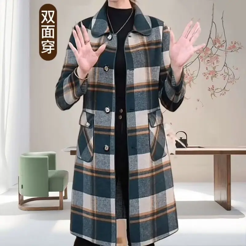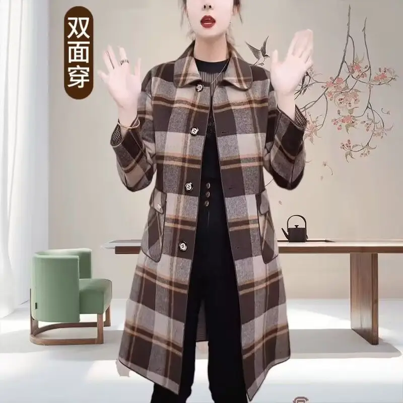 Giacca di lana di mezza lunghezza primaverile e autunnale di alta qualità giacca di moda di mezza età Slim Fit giacca scozzese a doppia faccia