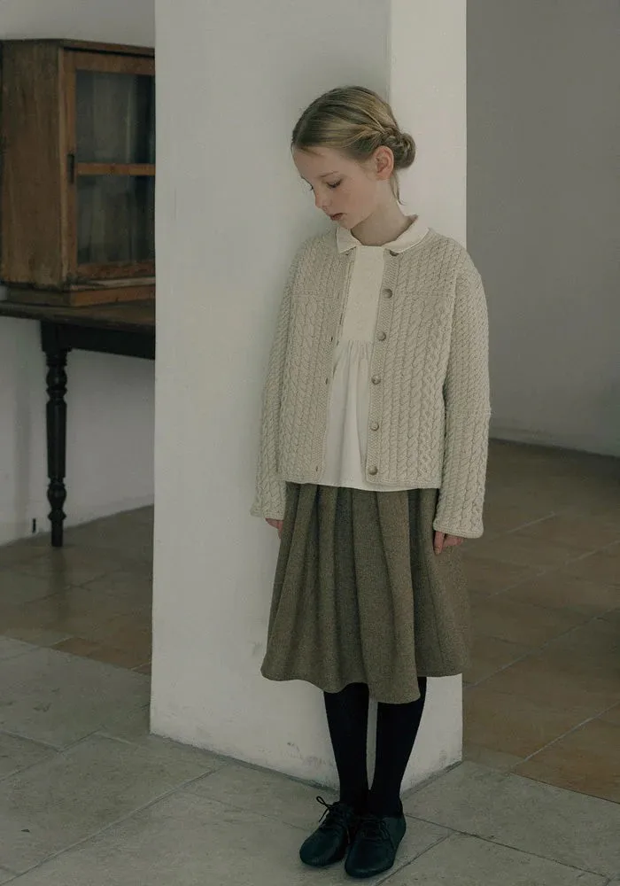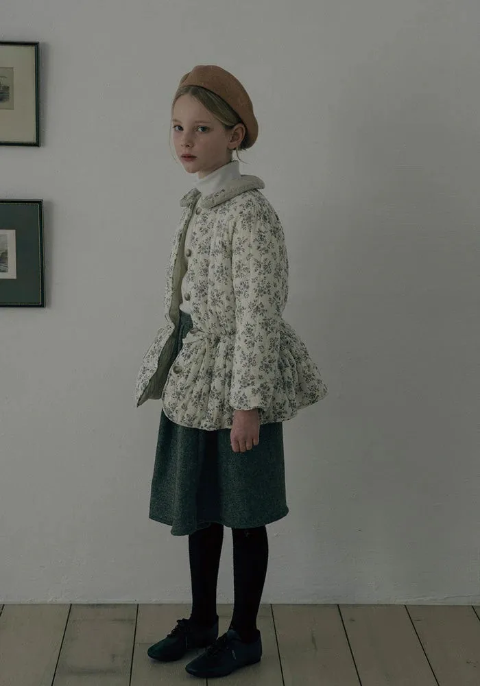 Giacca elegante imbottita in cotone per ragazze 2025 Autunno Inverno Cardigan Maglione Top Camicia bianca Mezza gonna floreale per ragazze Abbigliamento per ragazze