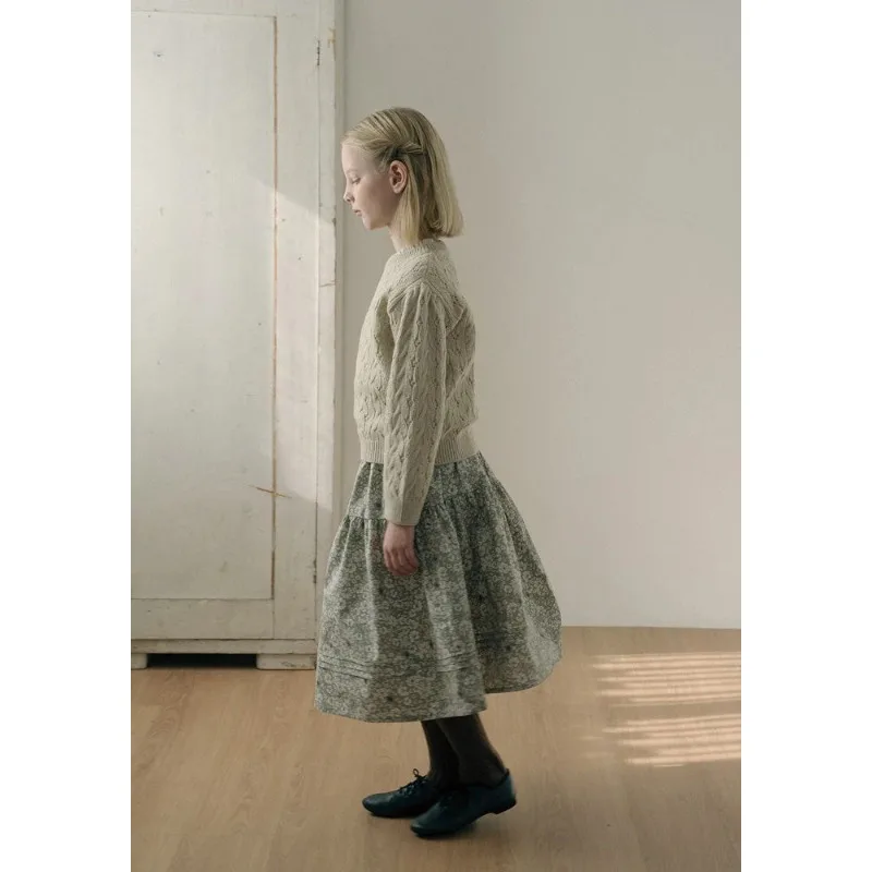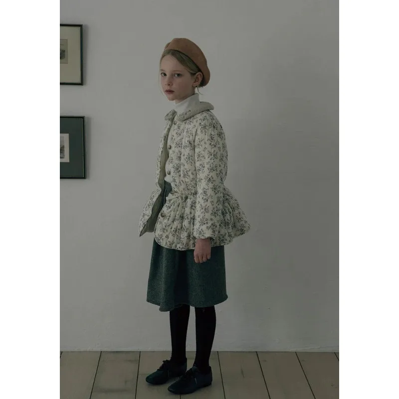 Giacca elegante imbottita in cotone per ragazze 2025 Autunno Inverno Cardigan Maglione Top Camicia bianca Mezza gonna floreale per ragazze Abbigliamento per ragazze