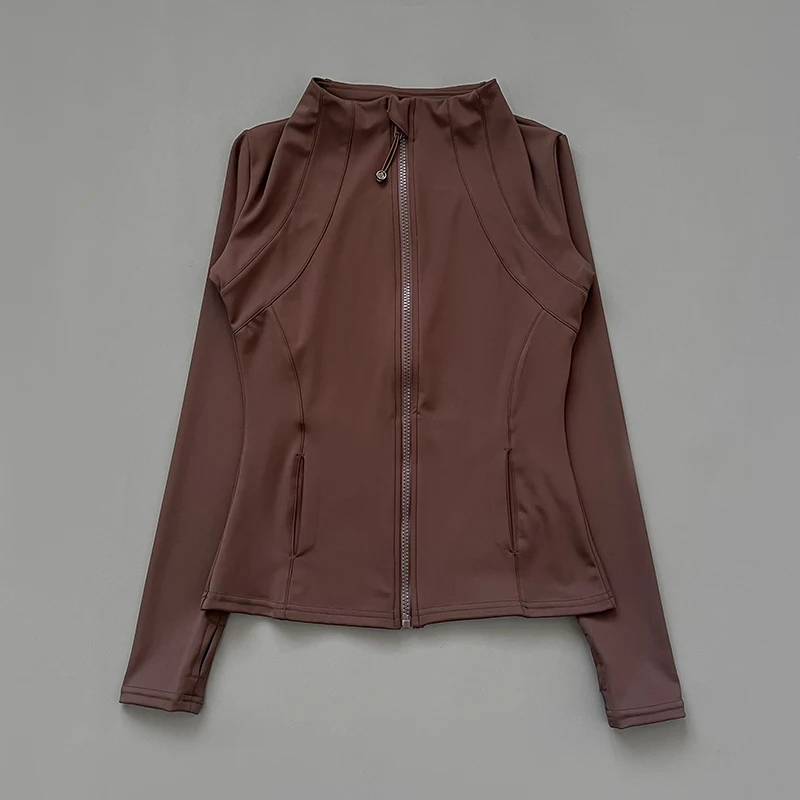 Giacca fitness da donna con colletto rialzato ad asciugatura rapida, cerniera aderente, abbigliamento da yoga, manica lunga, traspirante, corsa, sport, ciclismo
