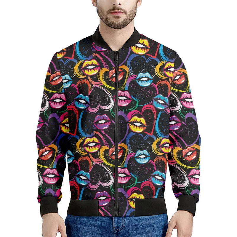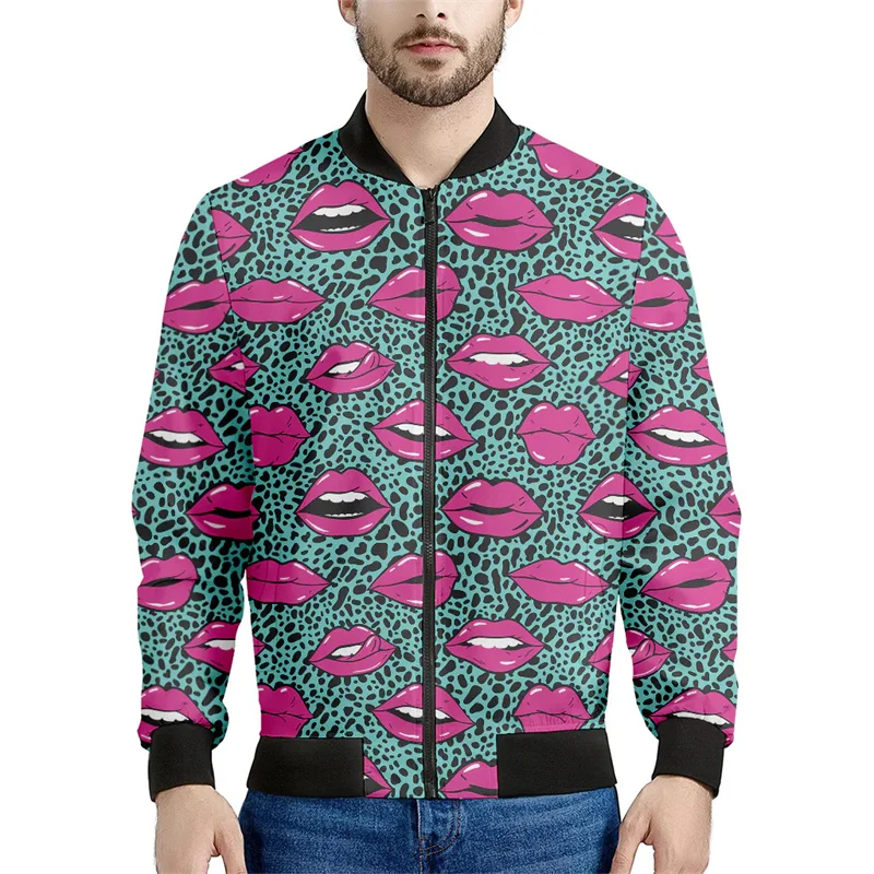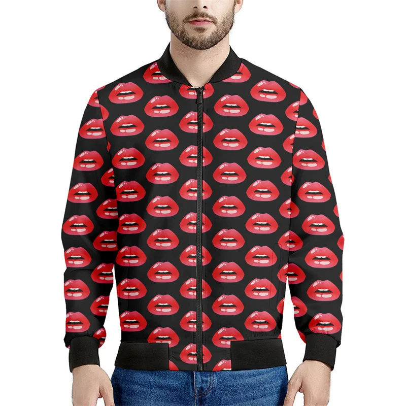 Giacca grafica Funky Red Lips per uomo donna felpa stampata in 3d Cool Casual Bomber Zipper giacche Street Fashion top Coat