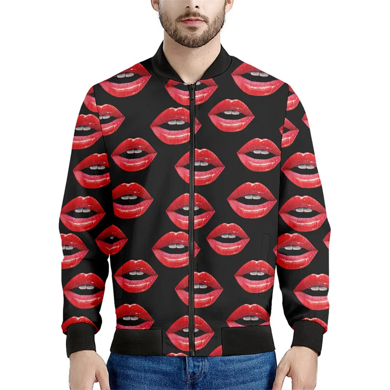 Giacca grafica Funky Red Lips per uomo donna felpa stampata in 3d Cool Casual Bomber Zipper giacche Street Fashion top Coat