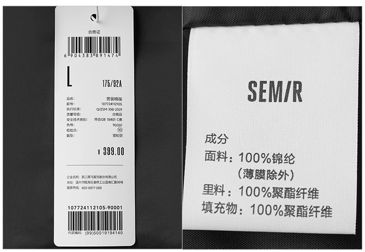 Giacca imbottita in cotone Semir da uomo con design a trama stampata spessa colletto alla coreana 2025 nuovi capispalla moda invernale