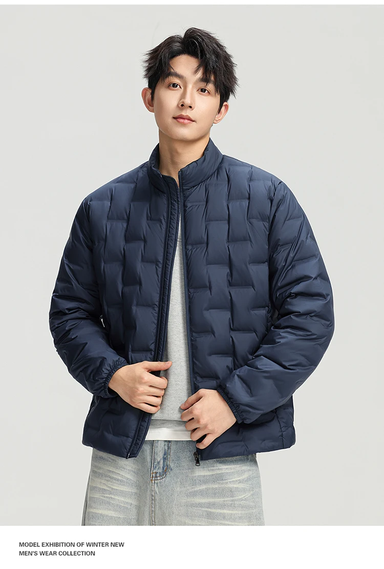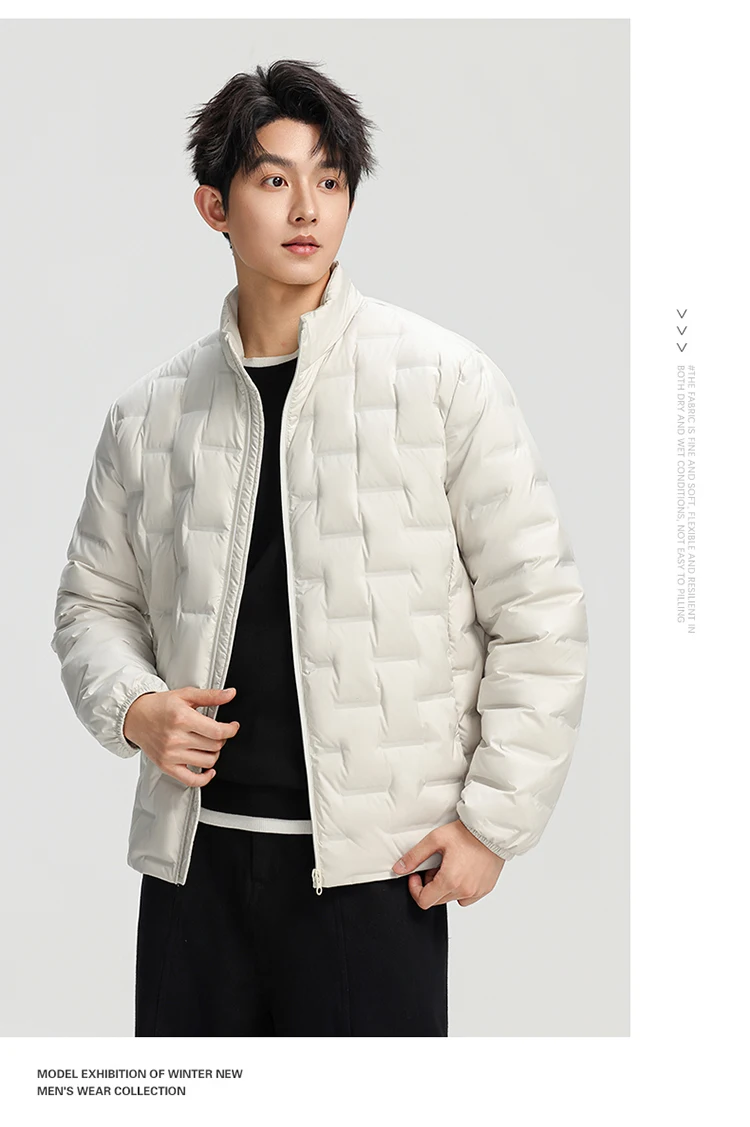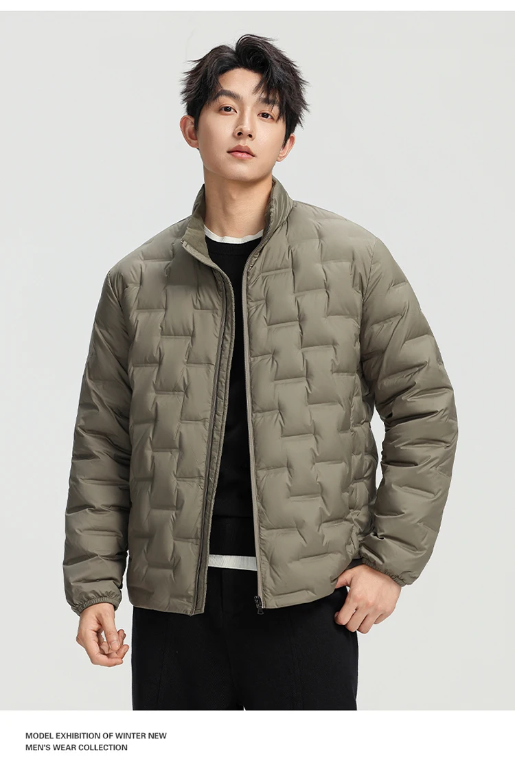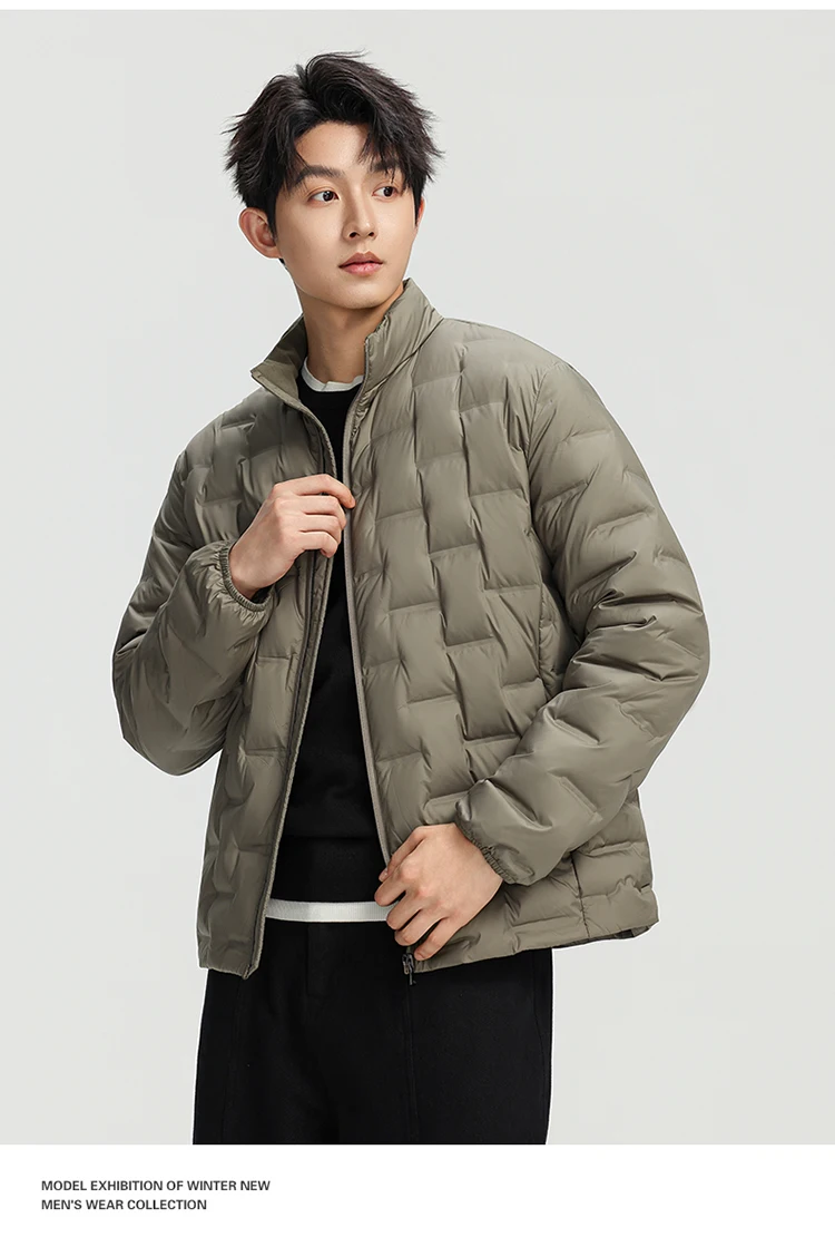 Giacca imbottita in piuma d'anatra bianca al 90% da uomo in stile coreano con colletto alla coreana Cappotto leggero caldo antivento per pendolari quotidiani per l'autunno inverno 1Giacca imbottita in piuma d’anatra bianca al 90% da uomo in stile coreano con colletto alla coreana Cappotto leggero caldo antivento per pendolari quotidiani per l’autunno inverno
