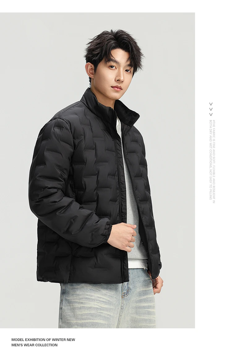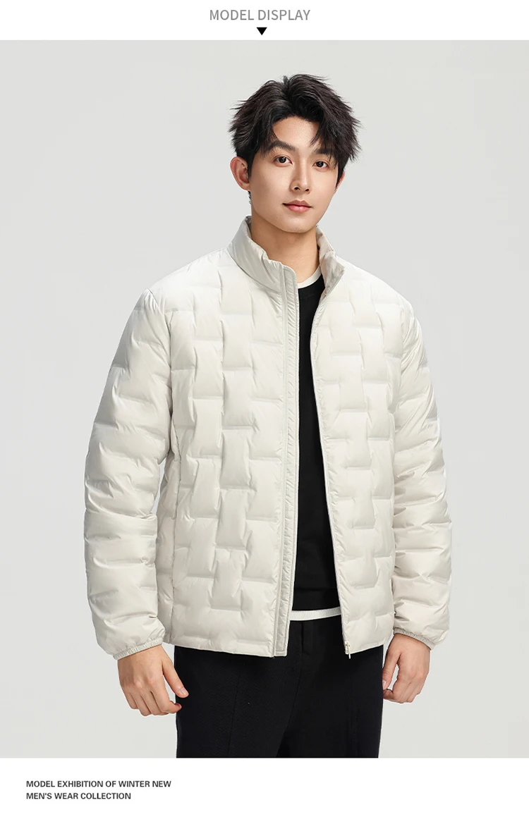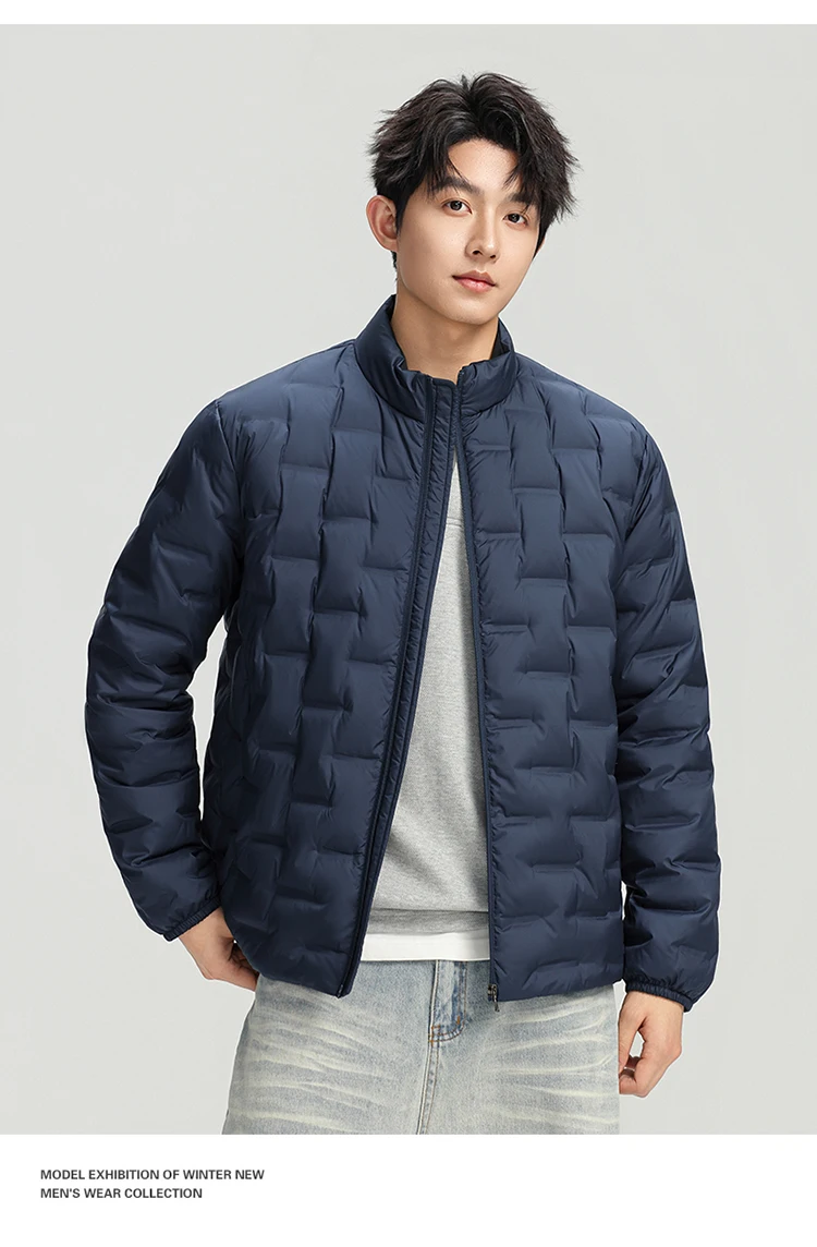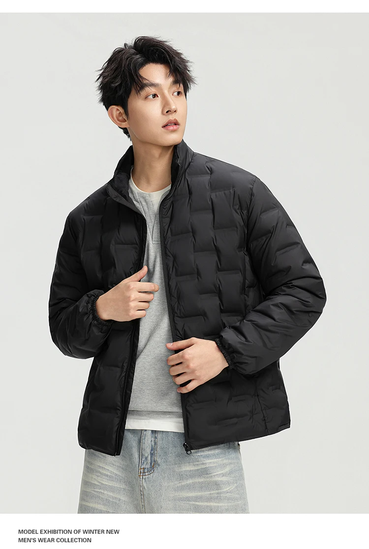 Giacca imbottita in piuma d'anatra bianca al 90% da uomo in stile coreano con colletto alla coreana Cappotto leggero caldo antivento per pendolari quotidiani per l'autunno inverno 1Giacca imbottita in piuma d’anatra bianca al 90% da uomo in stile coreano con colletto alla coreana Cappotto leggero caldo antivento per pendolari quotidiani per l’autunno inverno
