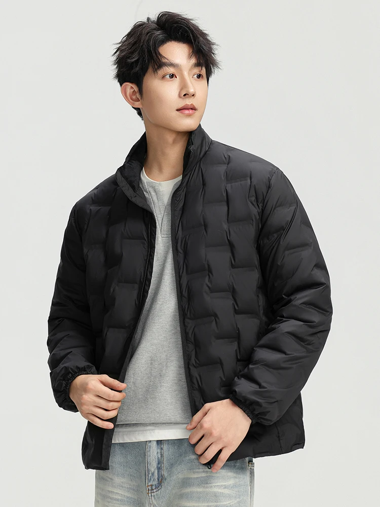 Giacca imbottita in piuma d'anatra bianca al 90% da uomo in stile coreano con colletto alla coreana Cappotto leggero caldo antivento per pendolari quotidiani per l'autunno inverno 1Giacca imbottita in piuma d’anatra bianca al 90% da uomo in stile coreano con colletto alla coreana Cappotto leggero caldo antivento per pendolari quotidiani per l’autunno inverno