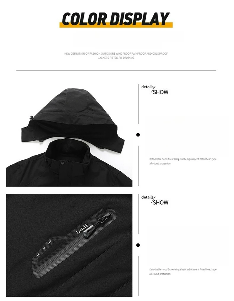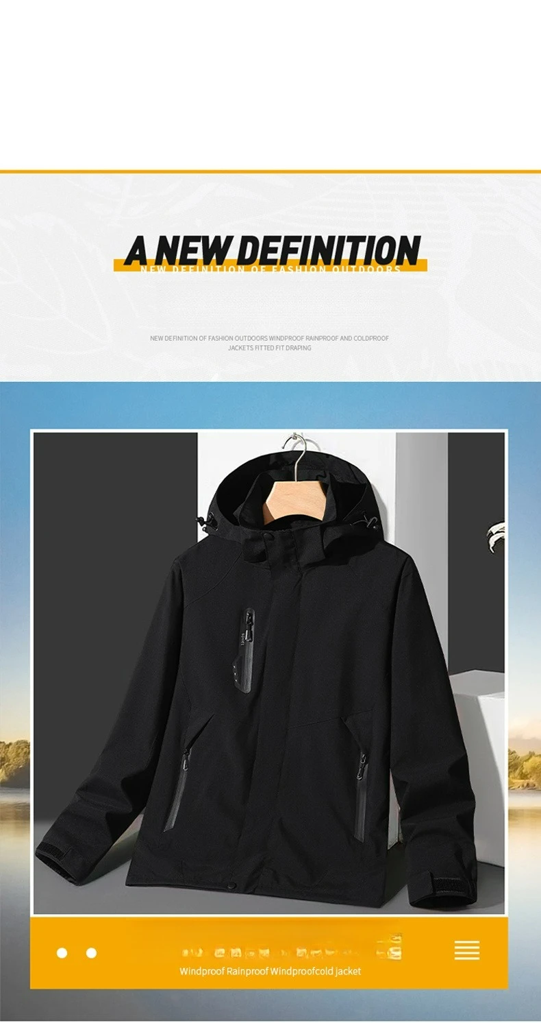 Giacca impermeabile da escursionismo da uomo Cappotto con cappuccio staccabile sottile di grandi dimensioni Corsa all’aperto Campeggio Pesca Giacca a vento Autunno 2025