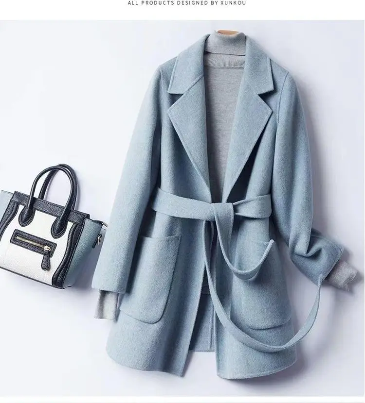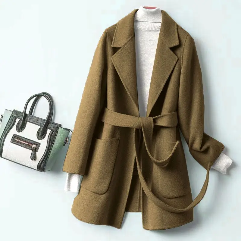 Giacca in lana autunnale e invernale per colletto da abito da donna Allacciato per far sembrare il cappotto di media lunghezza in lana sottile e versatile