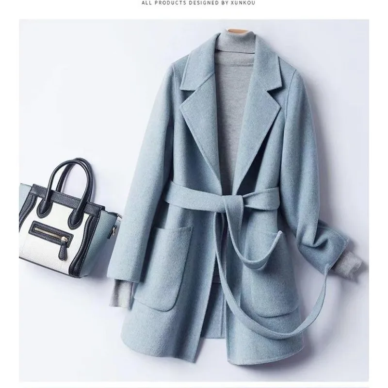 Giacca in lana autunnale e invernale per colletto da abito da donna Allacciato per far sembrare il cappotto di media lunghezza in lana sottile e versatile